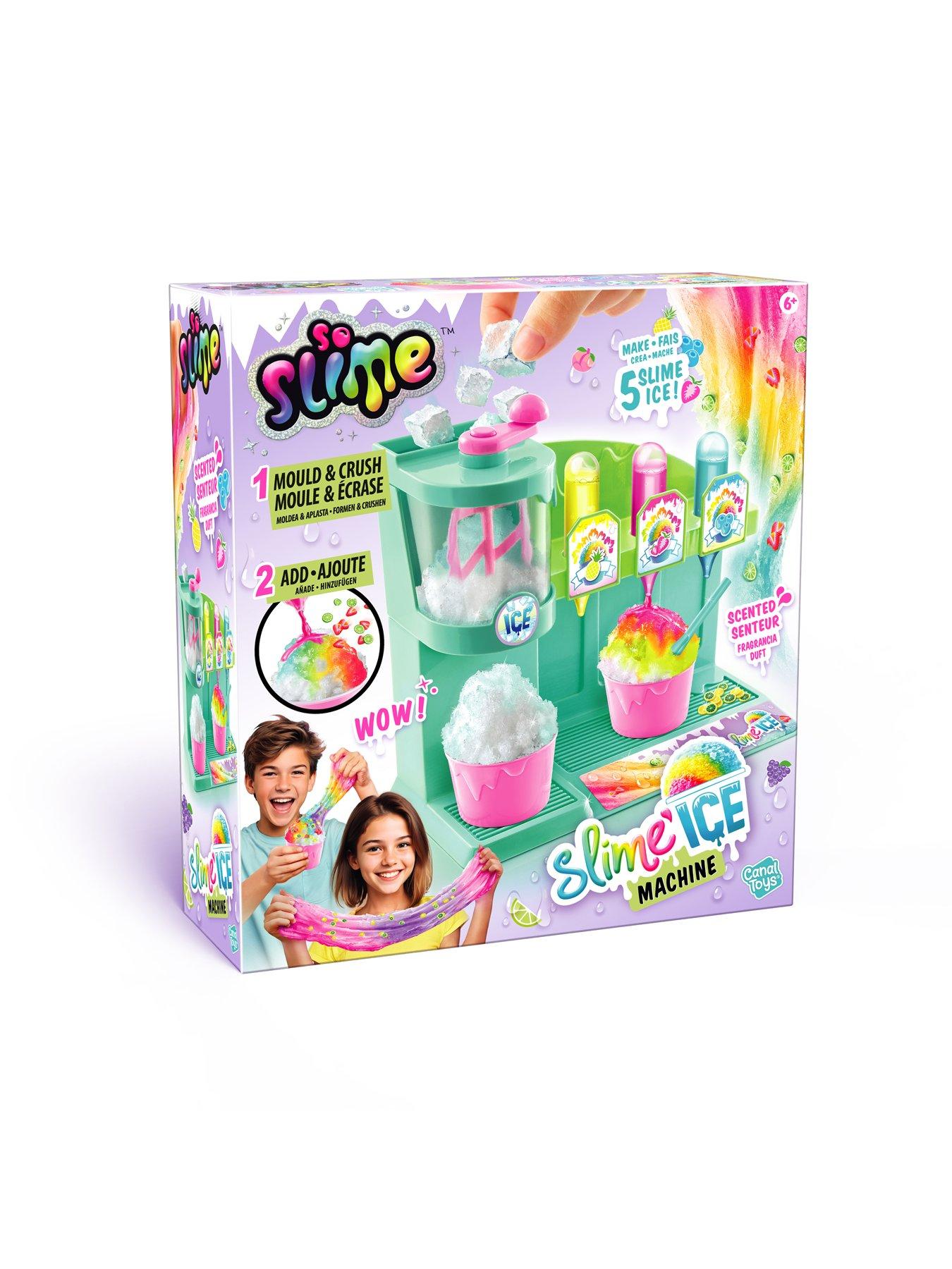 Create fun and colourful snow cones with the So Slime Slime'Ice Machine!Have hours of fun with the SlimeIce Machine the ultimate way to create your own colourful, scented mini snow cones! Mould into ice cubes then mix the cool ice slime. Scoop into cups using the spoon straw, then choose from 3 different scented dyes to add a fruity twist. Top it off with fun, fruity decorations for a perfect mini snow cone every time. With the So Slime SlimeIce Machine, you can enjoy creative play while making your own colourful treats that smell as good as they look!