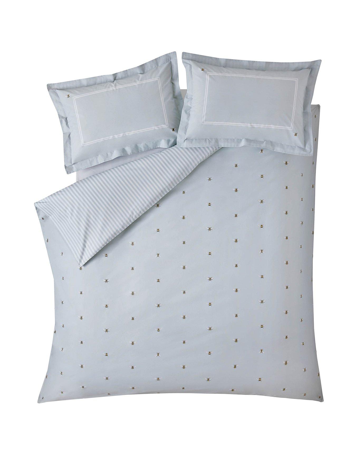Sophie Allport Bees 100% Cotton Quilt SetFeaturing stylish bee motifs on a soft duck-egg ground, this contemporary design was inspired by the buzzing bees around Sophie's country garden. On a 200TC cotton this bedding will add a touch of the English countryside to your bedroom and leave you dreaming of summer days. Available in sizes: single set, double set, king set and Super king set. Set includes duvet cover and 2 pillowcases (Includes 1 pillowcase with single set).