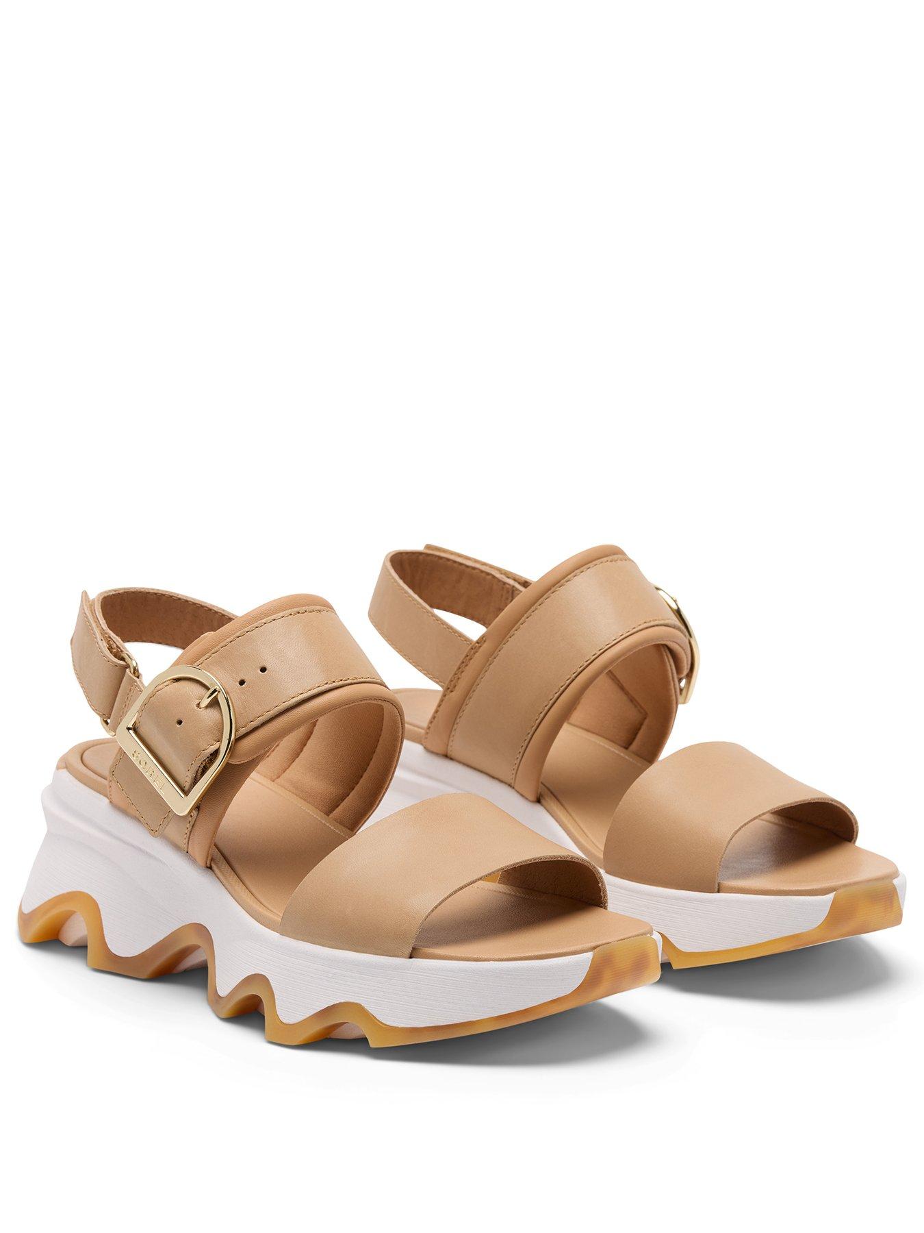 SOREL Womens Kinetic Impact Wedge Sandals - BeigeMolded rubber with ground contact EVA., Molded EVA footbed with synthetic topcover. Soft supple suede with full grain leather overlay in quarter panel and upper heel. Textile lining.