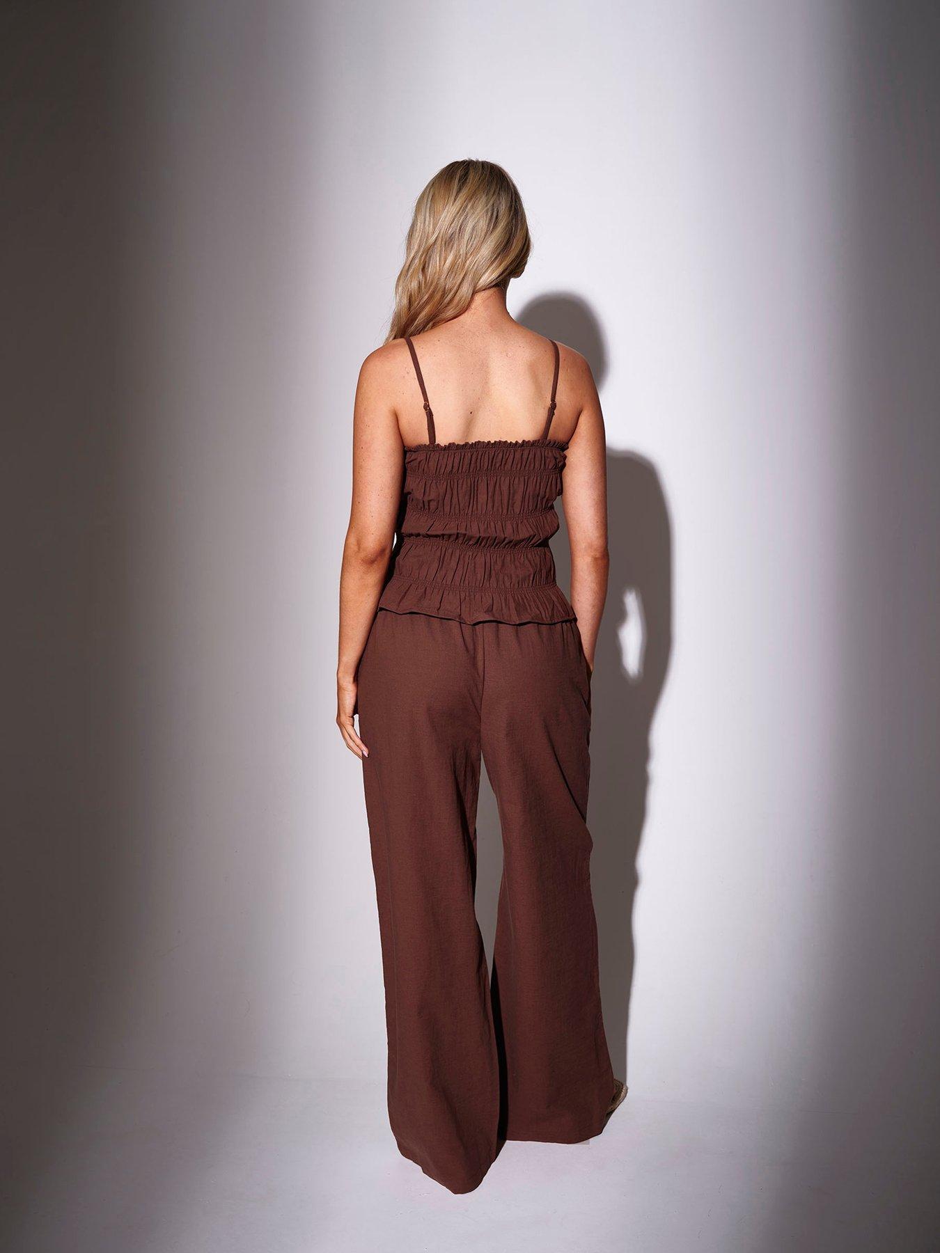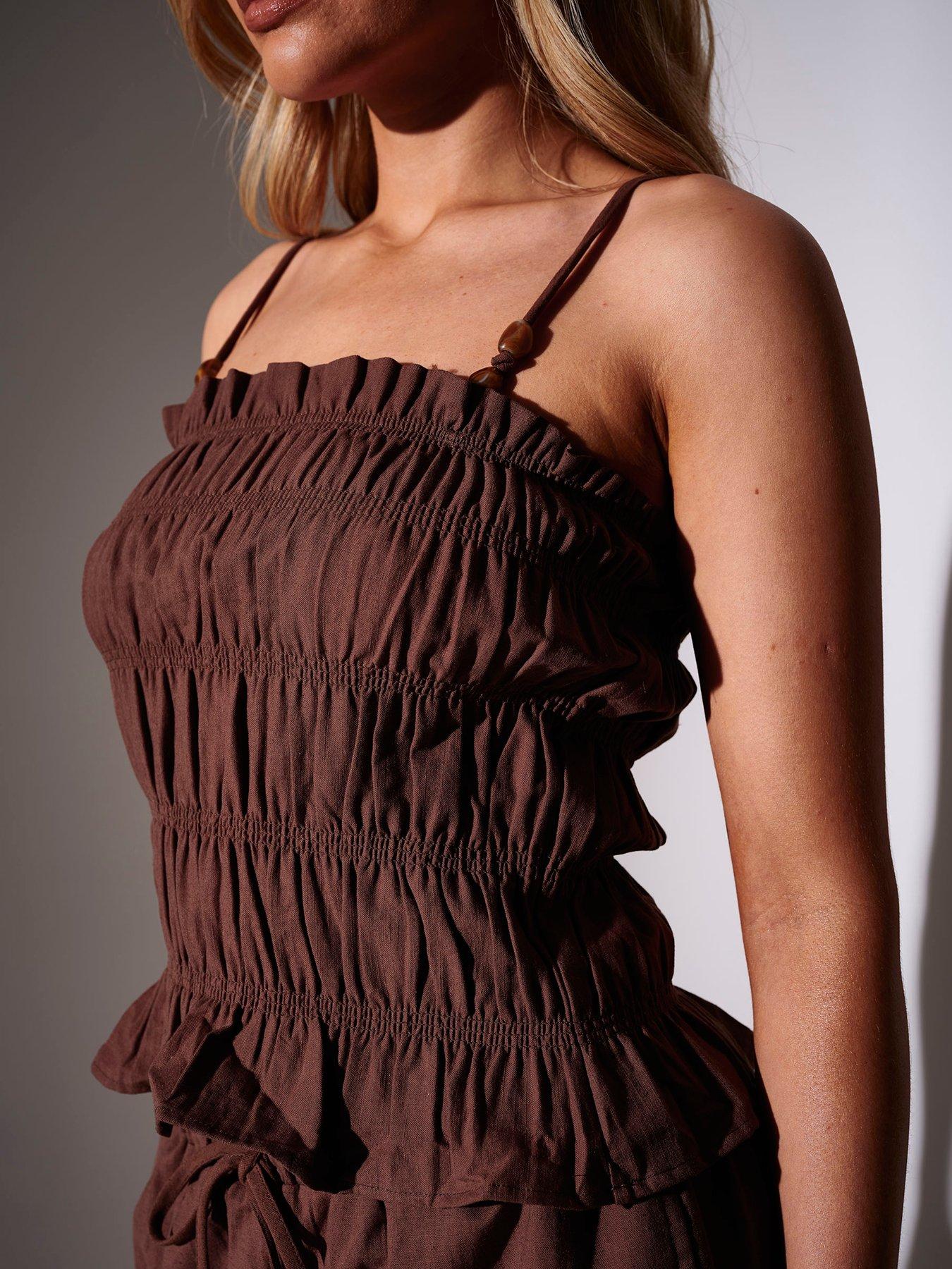 • Shirred, ruffled details