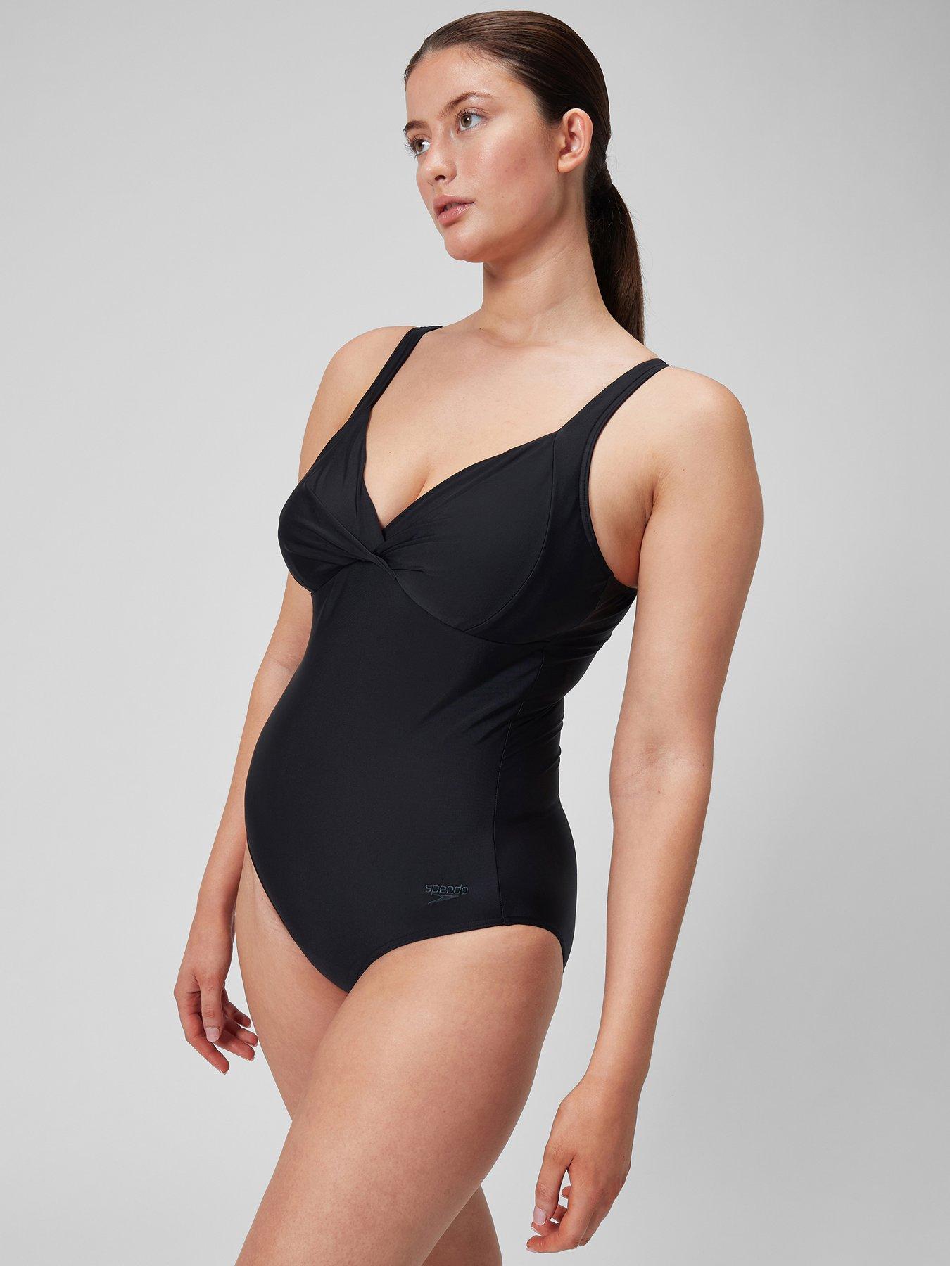 Speedo Womens Shaping Cross Knot 1 Piece - BlackTeam our Cross Knot Shaping Swimsuit with sandy toes or a fluffy spa robe. Based on our best-selling Brigitte swimsuit and offering all-over body shaping, it has a sweetheart neckline and a tummy control panel. Removable bra pads support and shape the bust. Made from chlorine-resistant EnduraFlex fabric, which fits like new for longer with CREORA HighClo™ Spandex.