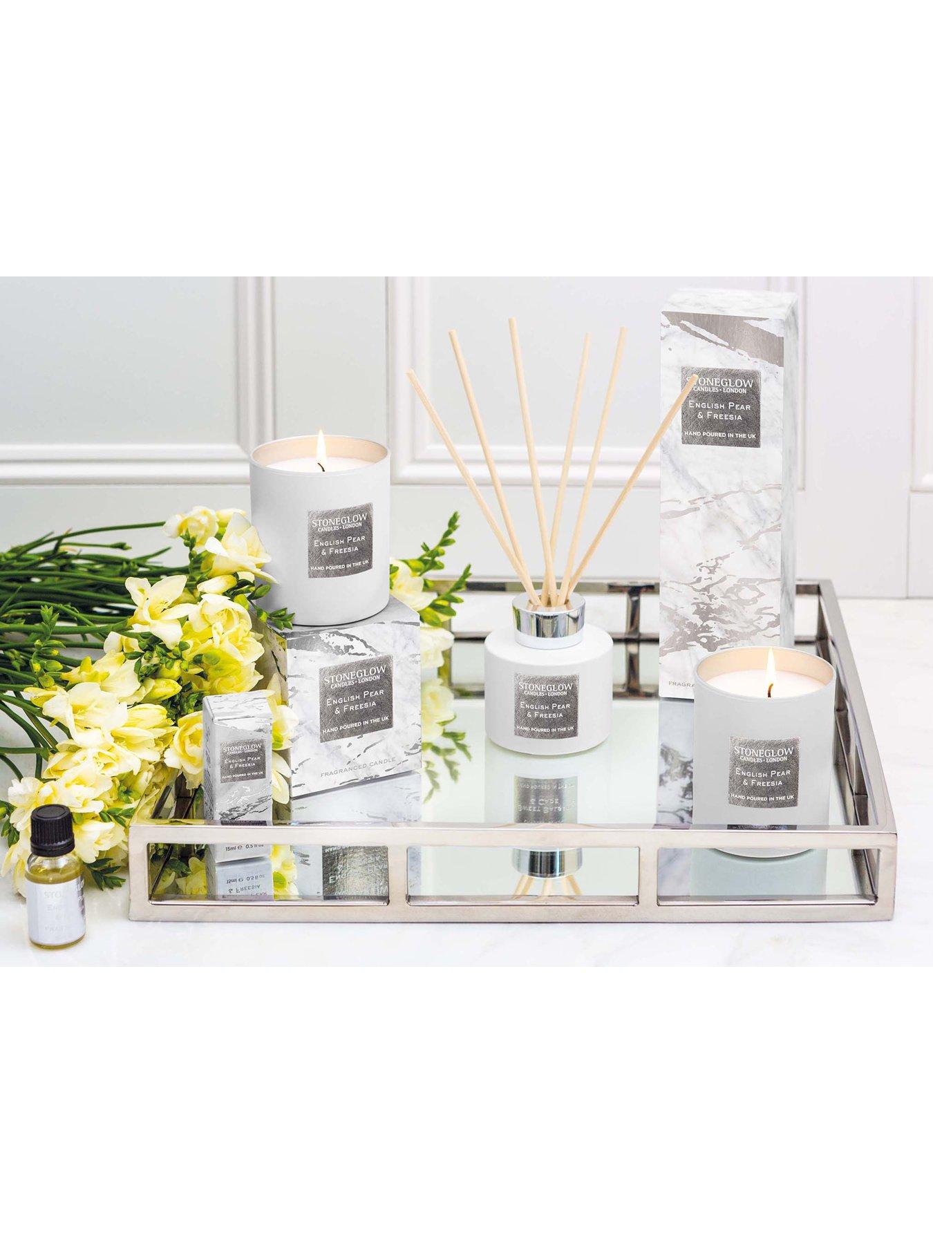 Stoneglow Luna Reed Diffuser - English Pear & FreesiaENGLISH PEAR & FREESIA - A bouquet of sweet-smelling freesias, white jasmine and roses, mingling with ripened pears, patchouli with a splash of bergamot for an opulence aroma experience.