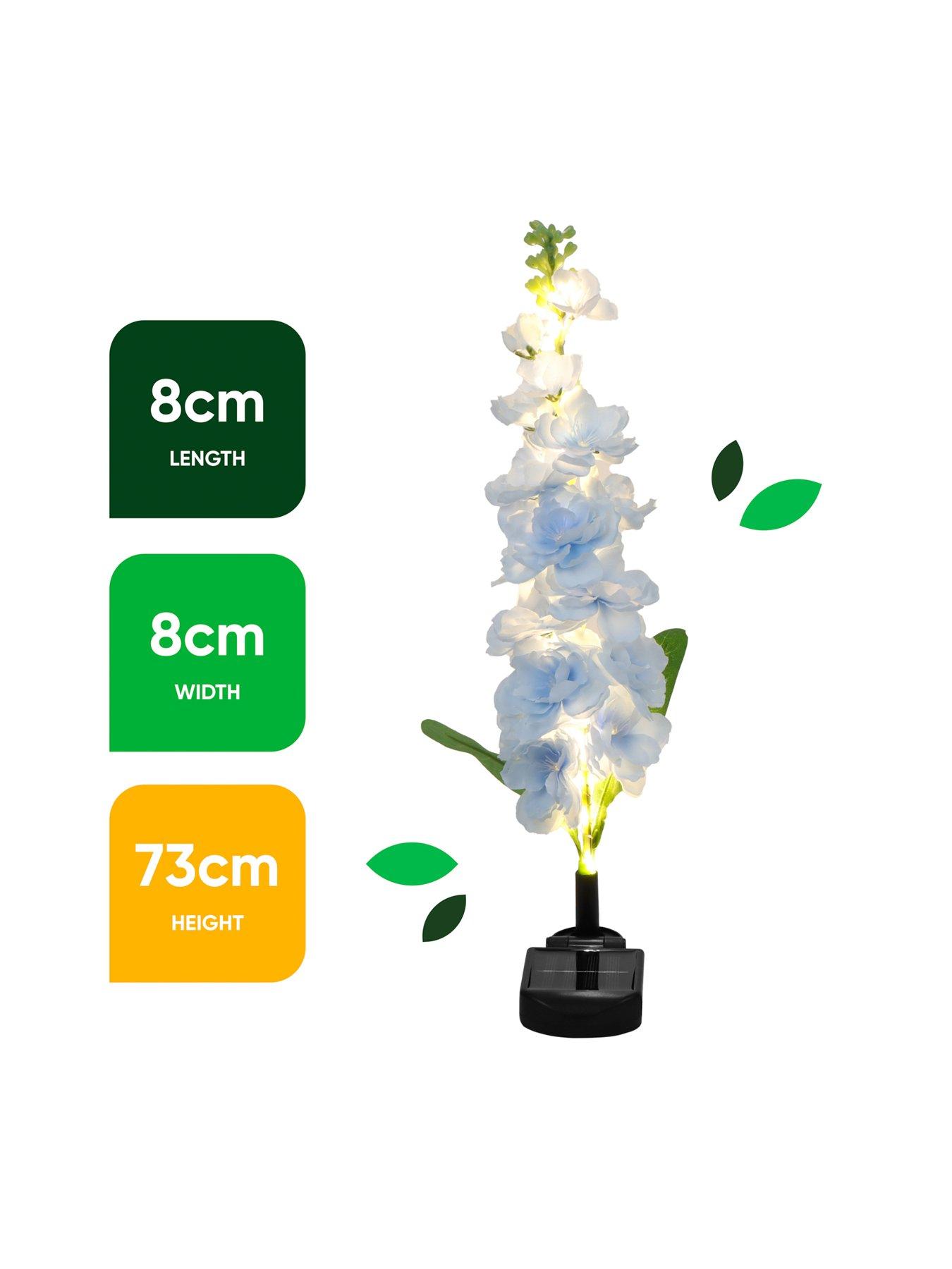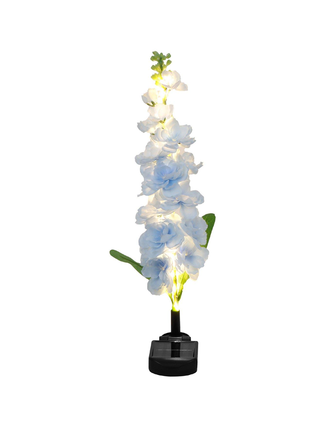 Streetwize Solar Delphinium Flowers LightsBring Colourful Charm to Your GardenAdd floral beauty to your outdoor spaces with the GW613 Blue Delphinium Solar Lights. Each 70cm stake features lifelike blue delphinium flowers that shimmer in sunlight and glow warmly at night. Perfect for pathways, patios, flower beds, and planters. Warm White LED Glow Equipped with 20 warm white LEDs, these solar lights provide soft, inviting illumination to create a magical evening ambience. Solar-Powered Powered by a polycrystalline solar panel and battery, they charge during the day and light up at night-completely wire-free and energy-efficient. Durable & Weather-Resistant Crafted from weatherproof materials, they withstand rain, wind, and sunlight, with slender black stakes blending seamlessly into your garden.