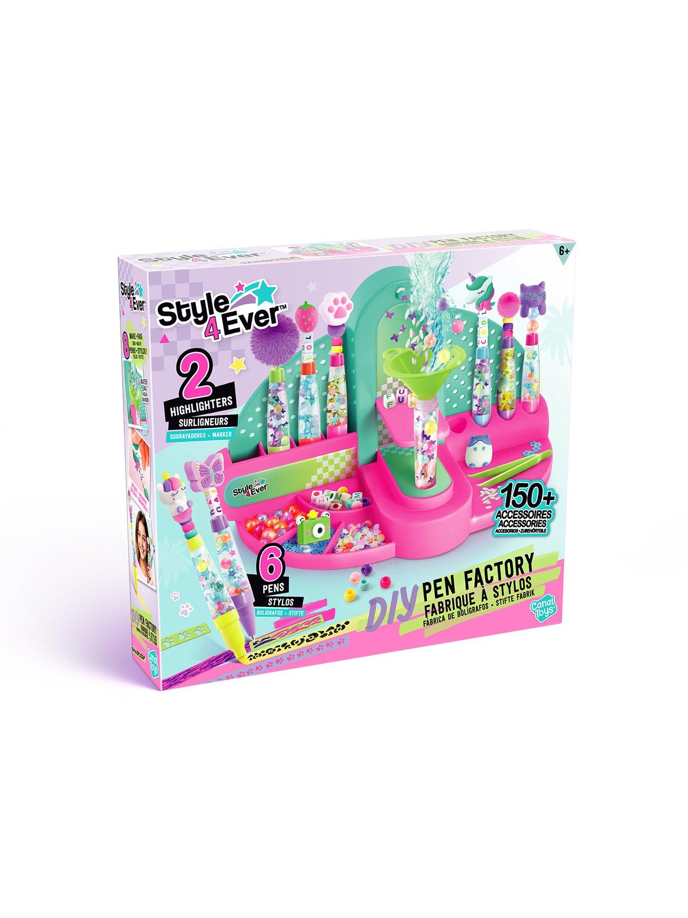 Style 4 Ever Style 4 Ever 3 in 1 DIY Pen FactoryCreate your own awesome collection of DIY pens and highlighters With the Style 4 Ever 3 in 1 DIY Pen Factory. Personalise each pen by adding water and shake to mix your chosen colour. Drop in glitter, charms, and cute decorations for extra sparkle, then finish with custom erasers to match your style. With 8 pens and highlighters to design, there are plenty of creative combinations. Write, doodle, and highlight with stationery made by you. Perfect for sharing with friends or gifting too.