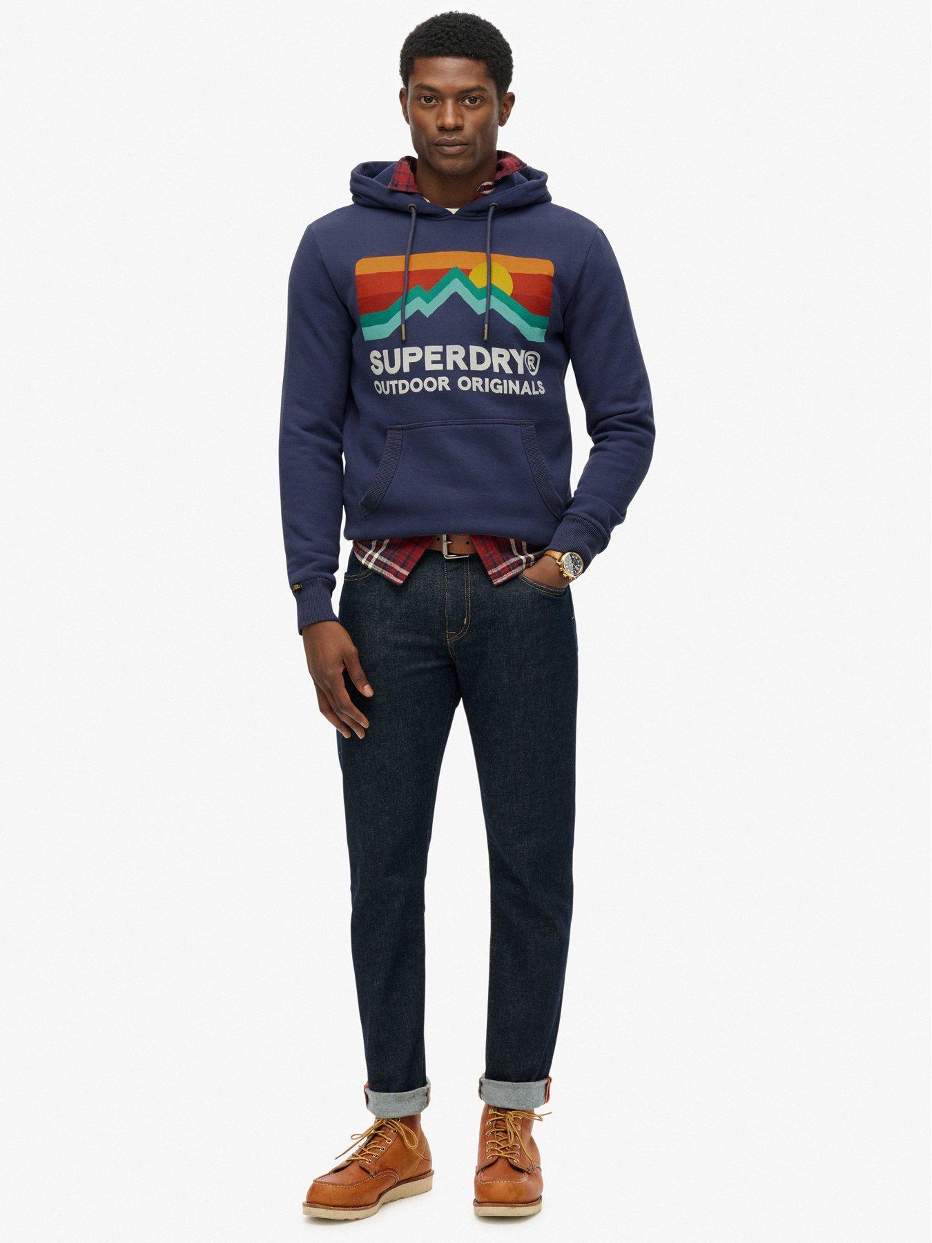 Superdry Great Outdoors Relaxed HoodieRelaxed fit - the classic Superdry fit. Not too slim, not too loose, just right. Go for your normal size. Drawcord hood. Ribbed trims and large front pocket. Printed graphic across chest. Logo badge on cuff. An iconic layering piece that brings you a timeless vintage vibe to your essential wardrobe. Inspired by classic American heritage, the Great Outdoors Relaxed Hoodie is here to showcase your authentic creativity and fit seamlessly into your rotation. A statement hoodie that has an adventurous touch to breathe a breath of fresh air back into your casualwear, it's an instant hit.