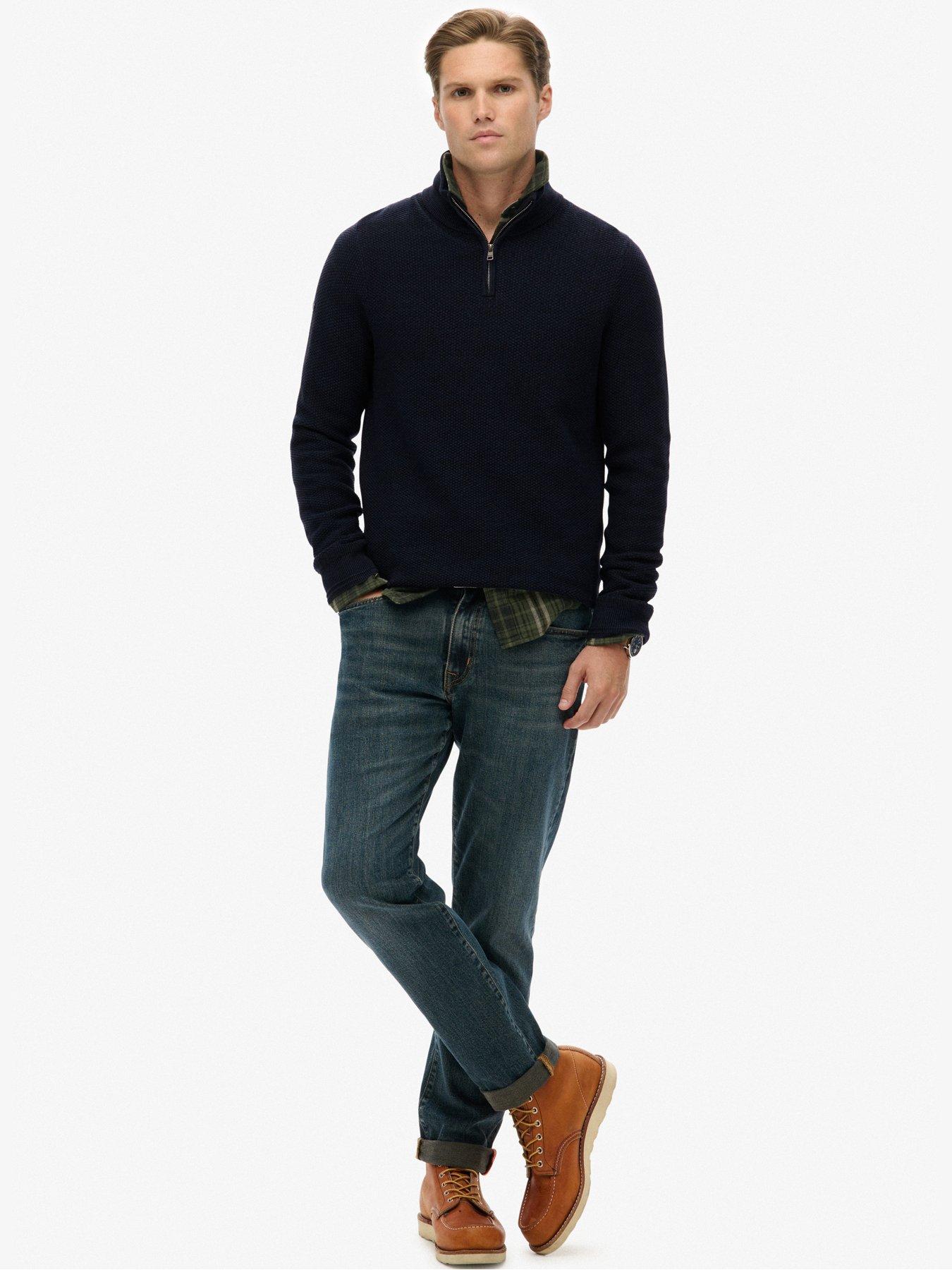 Superdry Cotton Texture Henley Quarter Zip Knitted JumperRelaxed fit - the classic Superdry fit. Not too slim, not too loose, just right. Go for your normal size. Henley collar with zip fastening. Ribbed cuffs and hem. Subtle metal badge on sleeve. The perfect versatile piece that can be effortlessly styled with your distinctive wardrobe. The Cotton Texture Half-Zip Jumper has been expertly curated with immense detail to accompany you with the cold weather rotation this season. Imbued with that classic Superdry quality, this jumper ensures you can layer up with your own authentic sense of vintage style.