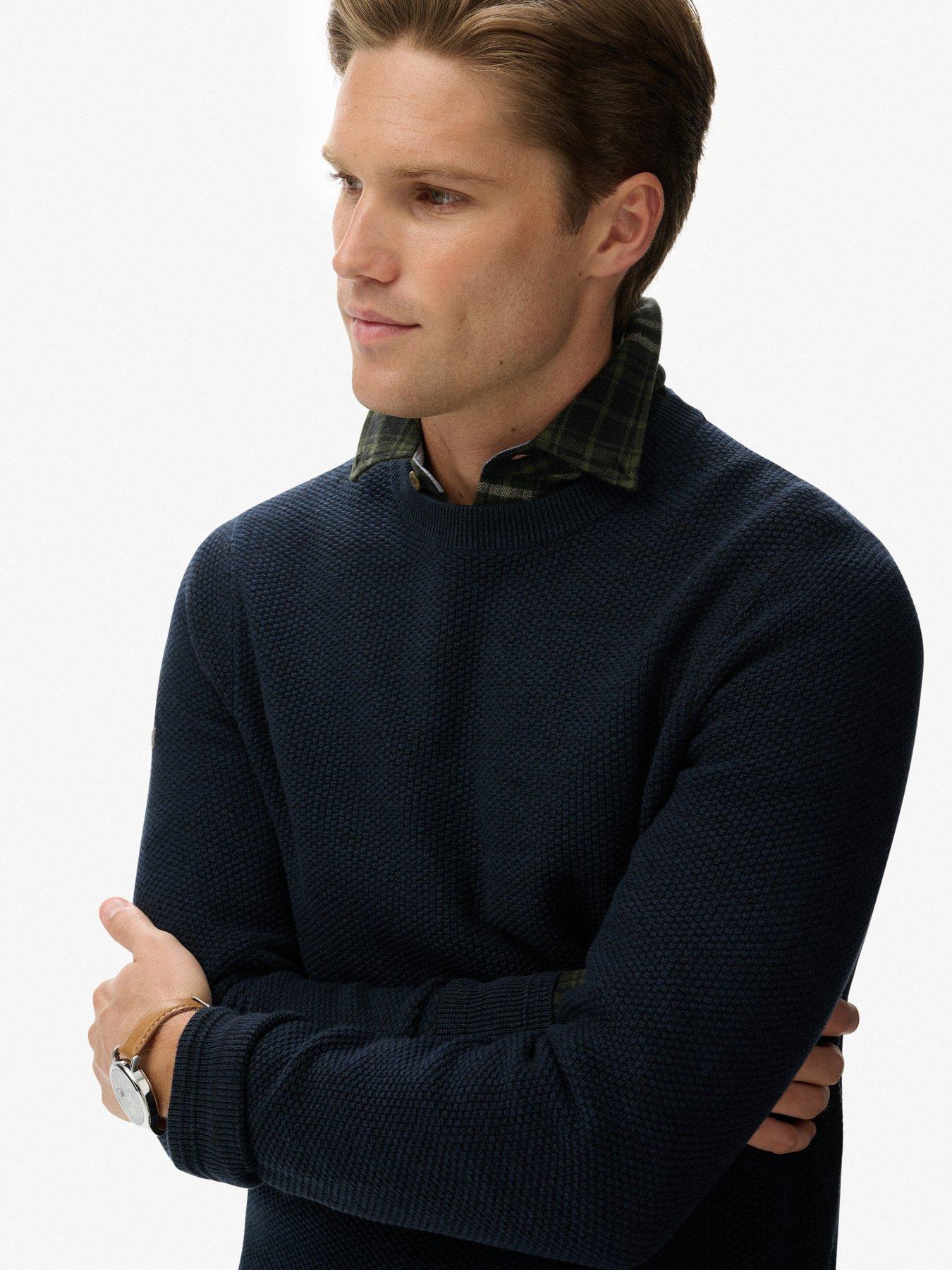 Superdry Cotton Texture Knitted JumperRelaxed fit - the classic Superdry fit. Not too slim, not too loose, just right. Go for your normal size. Crew neckline with ribbed trims . Signature badge on the sleeve. Our Light Weight Cotton Texture Jumper is a refreshed take on the classic jumper. We've expertly crafted it with a gorgeous textured material and classic finishes such as a crew neckline and ribbed trims; it's authentically Superdry but elevated to smarten up your daily looks.