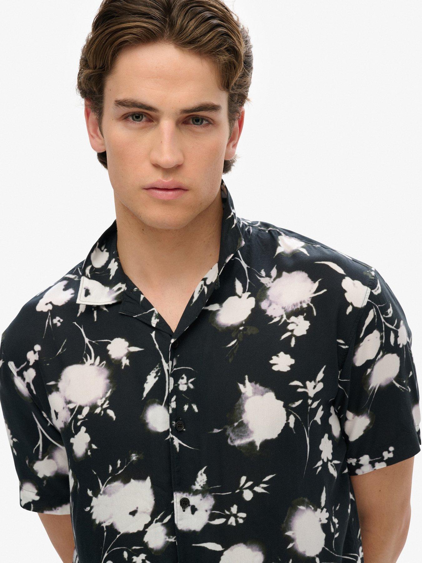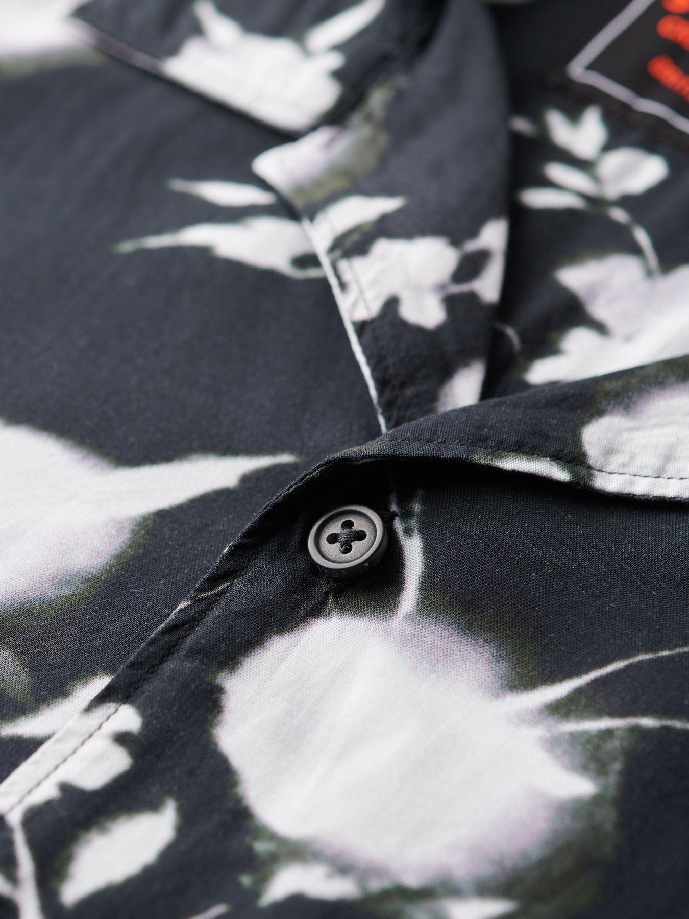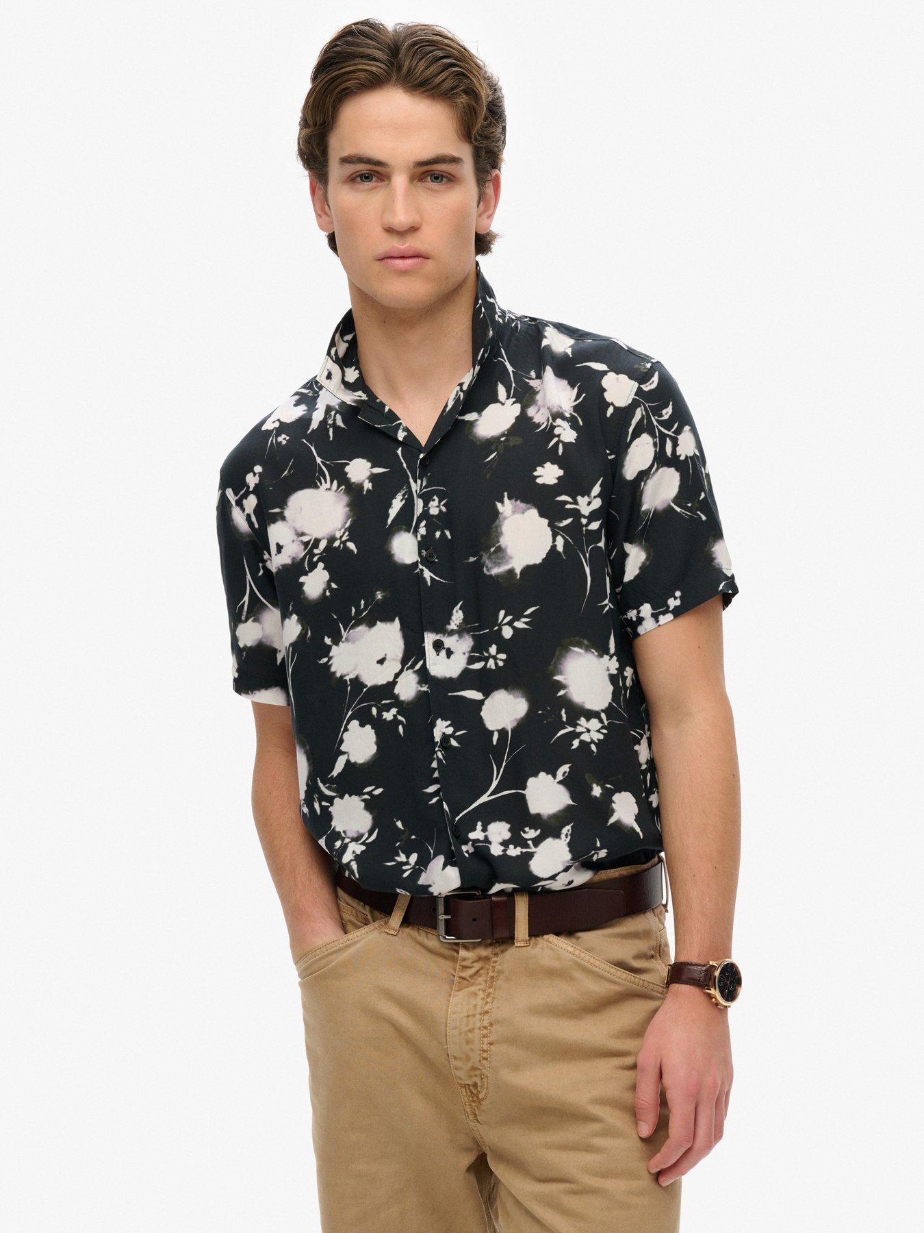 Superdry Short Sleeve Printed Shirt - BlackRelaxed fit - the classic Superdry fit. Not too slim, not too loose, just right. Go for your normal size. Button-through design with an all-over print. Standard collar and short sleeves. Straight hemline with split side seams. For a totally fresh vibe this summer, the Short Sleeve Printed Shirt has you covered. Featuring a bold abstract floral print that is sure to get you noticed, the boxy shape and lightweight material will ensure you stay comfortably cool and confident whether you're headed for the beach or enjoying a sunny day around town.Material & Care