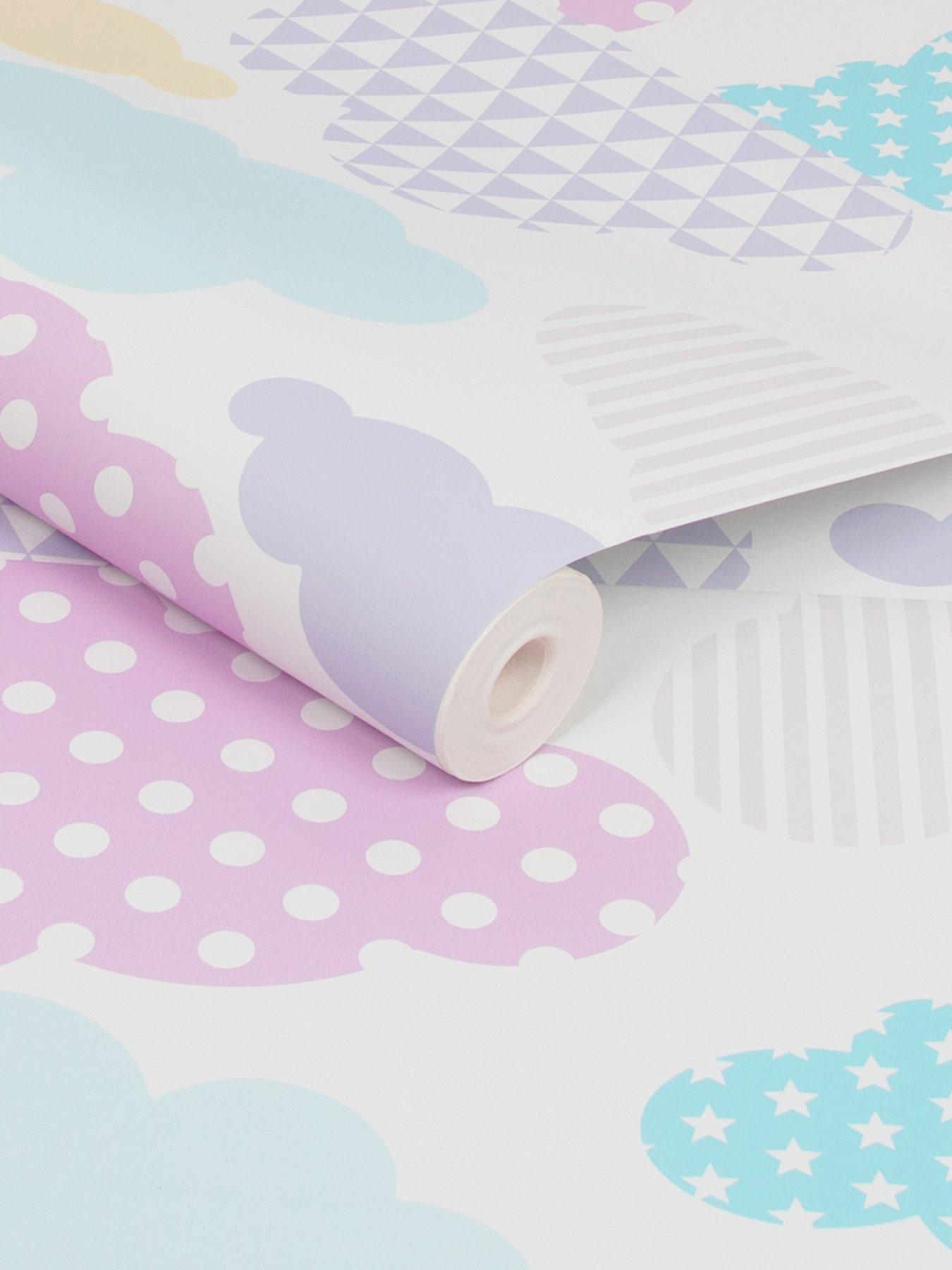Luxe Ogee Wallpaper - Black / SilverThe Marshmallow cloud wallpaper brings the cloud trend right up to date. The modern and fun design brings a great stylish solution to your children's bedroom.