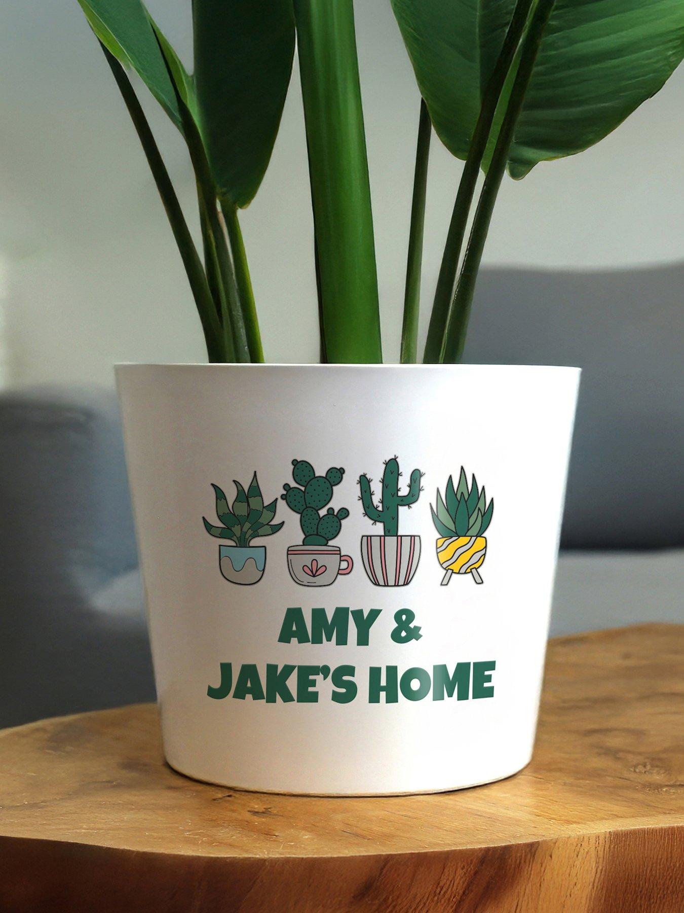 The Personalised Memento Company Personalised Ceramic Plant PotAdd a touch of charm to any space with our White Ceramic Plant Pot, a delightful home accessory featuring cute plant illustrations. The pot can be personalised with a message of up to 40 characters beneath the illustrations, creating a unique and thoughtful keepsake. All personalisation will appear in fixed UPPERCASE for a bold and clean finish.Measuring 12.5 cm high with a diameter of 15 cm at its widest point, this ceramic pot is ideal for displaying small plants or succulents. Please note, it does not have a drainage hole, and we recommend hand washing to keep it looking its best. Perfect as a gift or a charming addition to your own home, this personalised plant pot is a playful and stylish way to brighten up any space.
