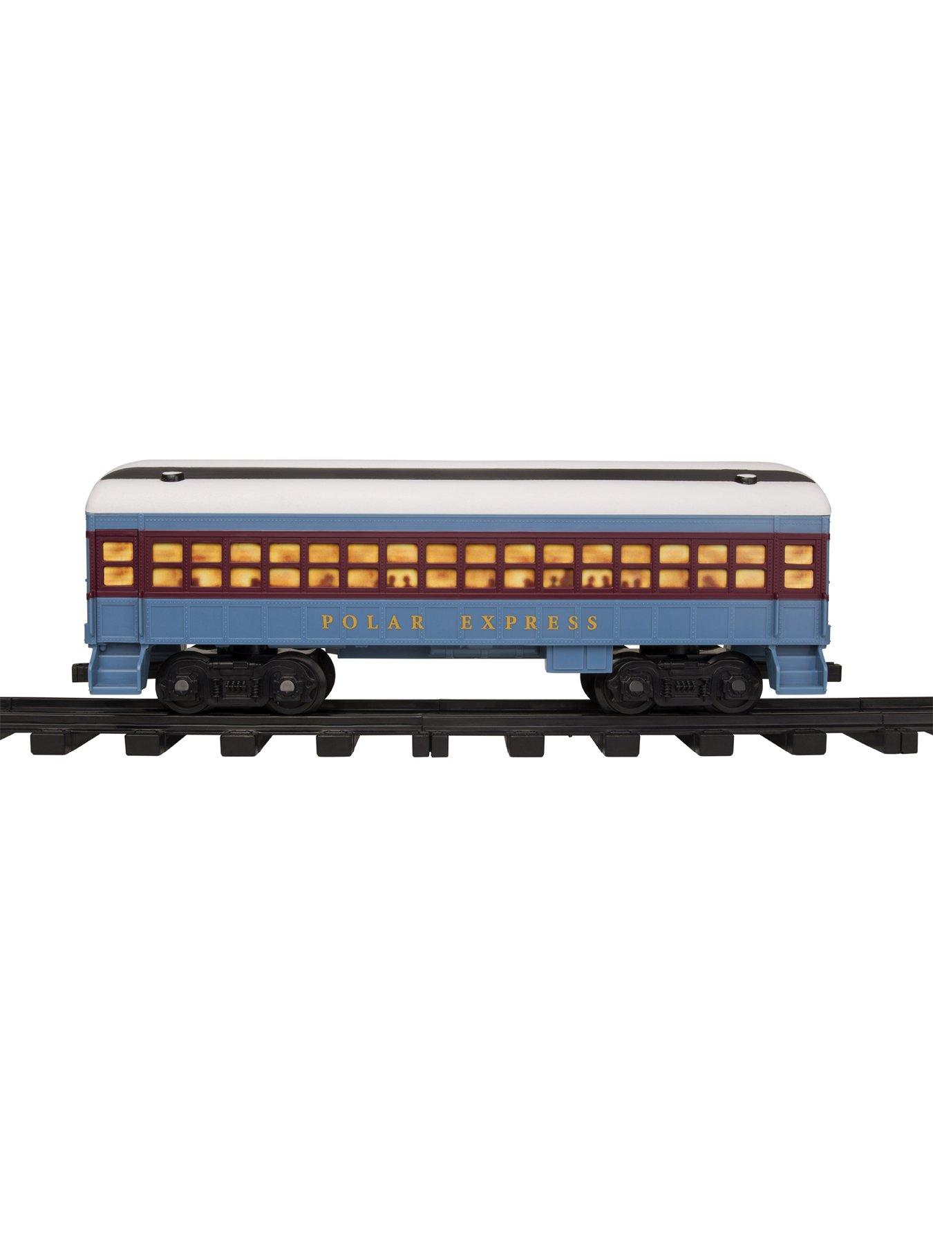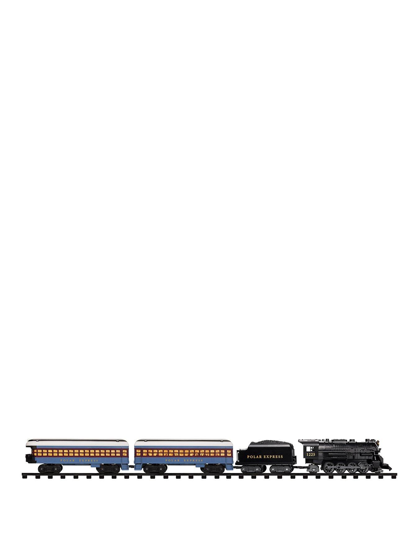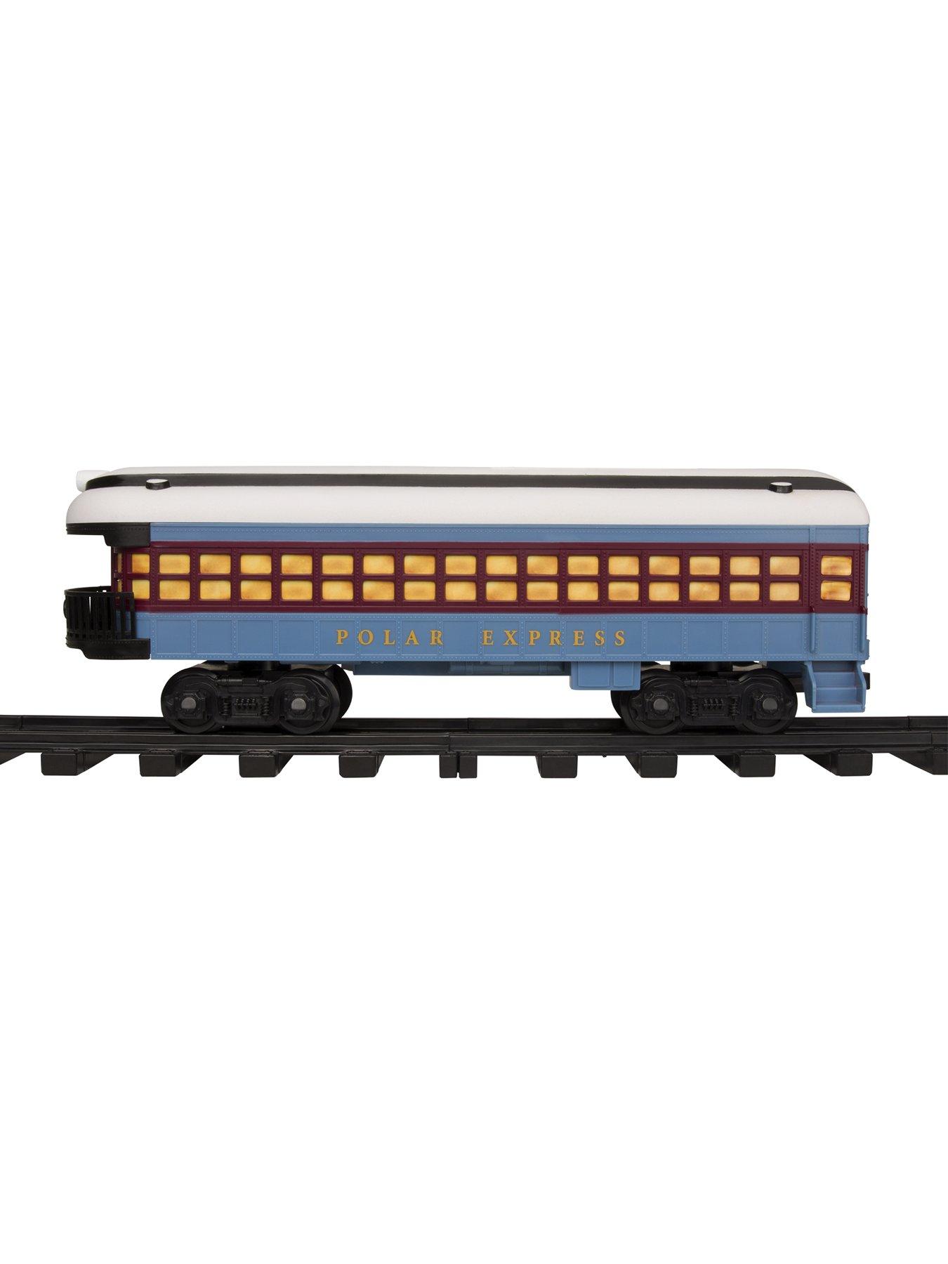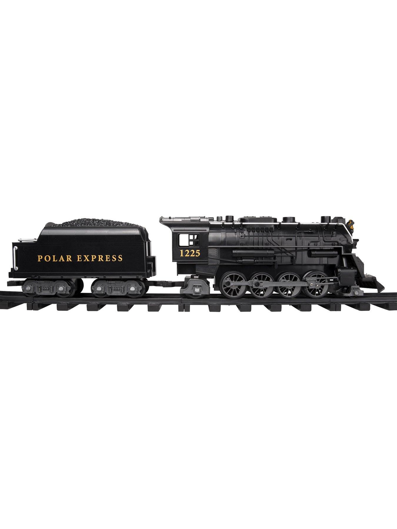 Keep the magic of Christmas chugging along with this Polar Express 37-Piece Remote Control Train Set.Showcase a wonderful Christmas scene with this beautiful set that inspires the imagination and radiates joy. It is a perfect decorative addition to put round the base of the tree and once completed, the track will measure 1.86 x 1.27 metres oval. Kids aged 4+ will love to look at the children’s silhouettes as they sit in the passenger cars, and imagine them drinking steaming mugs of hot chocolate and chattering excitedly about Santa.The Polar Express licensed train set comes with a 32-piece track (24 curved plastic track pieces and 8 straight track pieces) and a 4-piece train. The train comprises 1x locomotive engine with a working light, 1x engine tender, 1x train carriage and 1x observation carriage and also comes with a remote control (requires 3 x AAA batteries, not supplied). It also features 2 movie announcements ('All Aboard, this is The Polar Express' and 'I am the King of the North Pole', in addition to light and looping sounds (stream chuffing, whistle, and bell) and a 3-position switch (stop, forward with sound and forward without sound). Requires 3 x AAA batteries and 6 x C batteries.