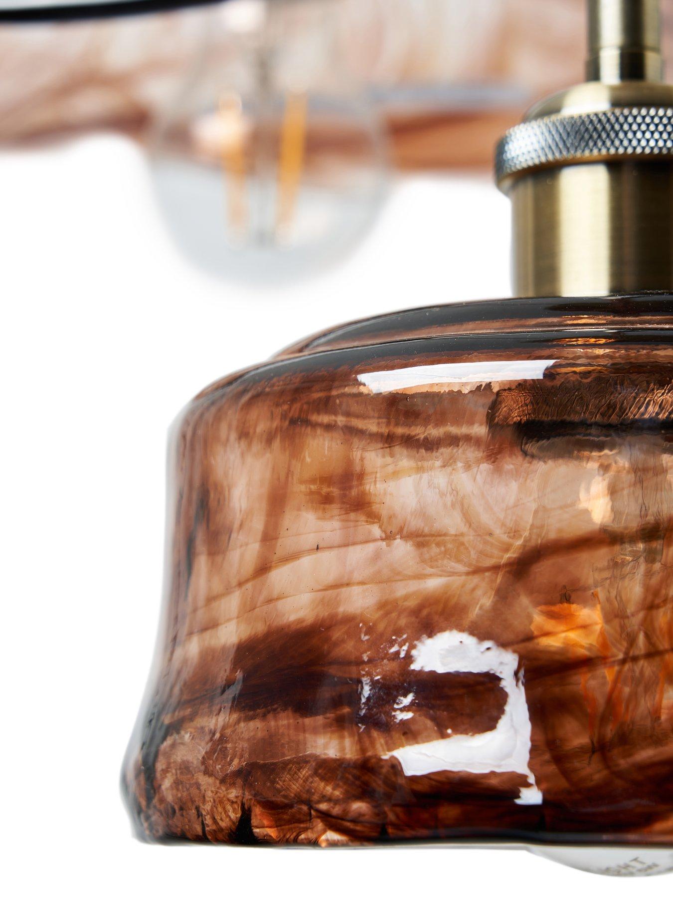 The Very Collection 3 Light Cluster With Brown GlassThis lighting fixture sounds like a sophisticated, multi-light statement piece that leverages the rich texture of the glass.