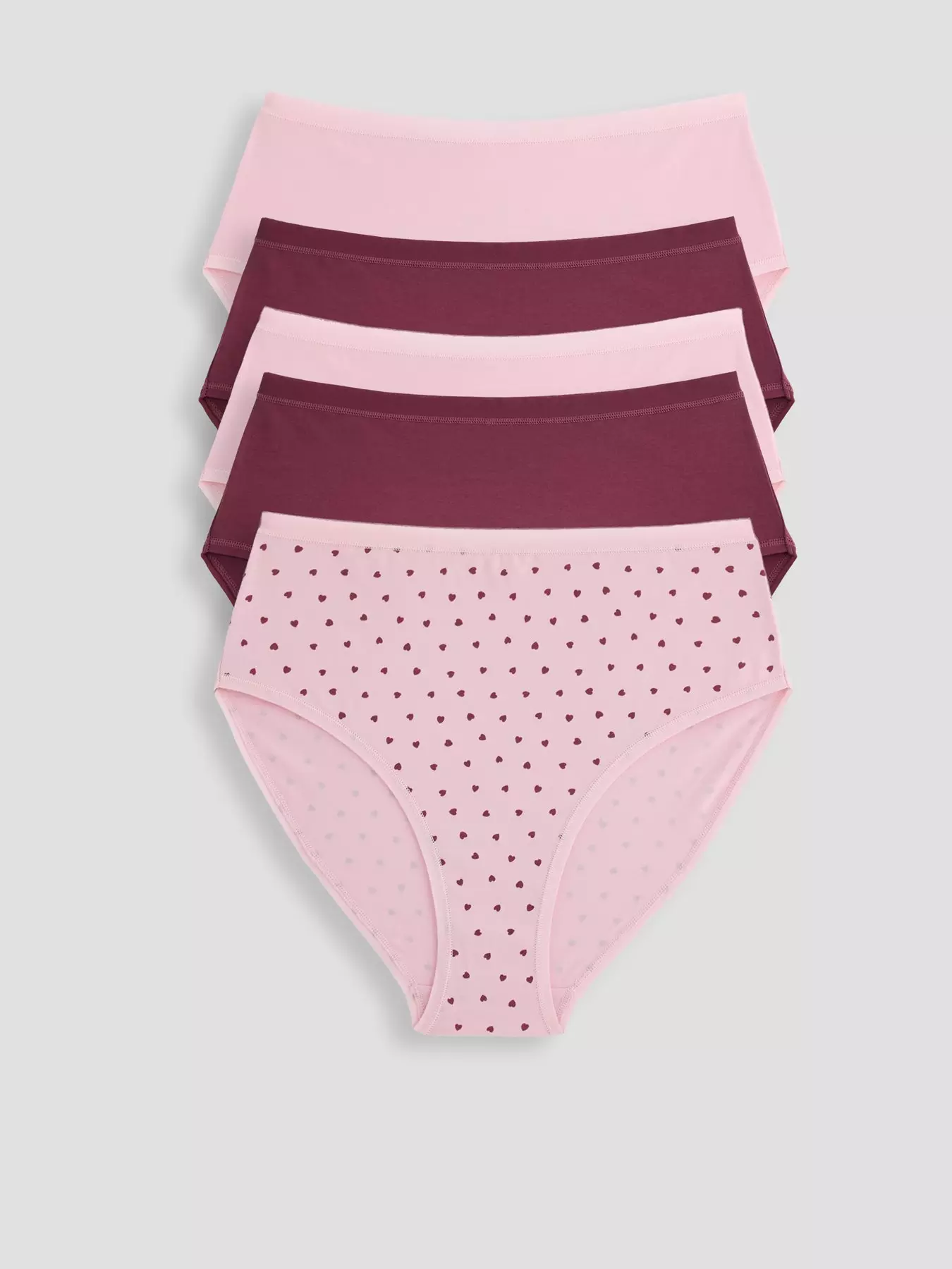 The Very Collection 5pk Cotton Plain And Printed High Leg Briefs Hearts