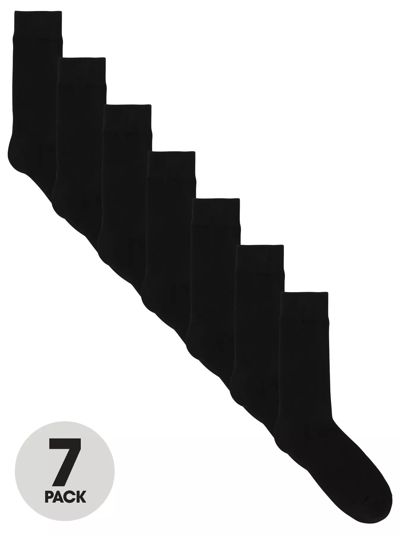 The Very Collection7 Pack Plain Black Socks - Black