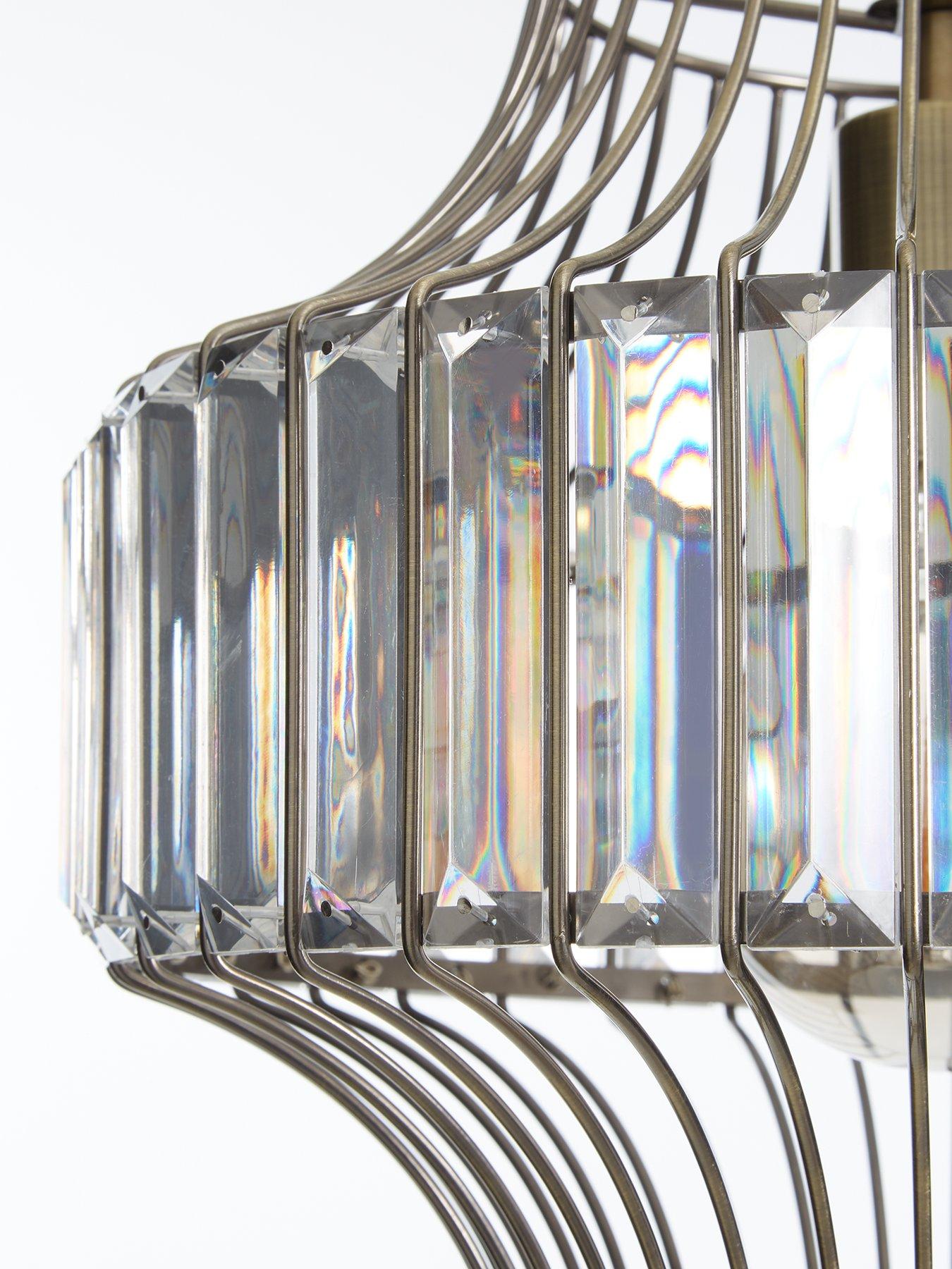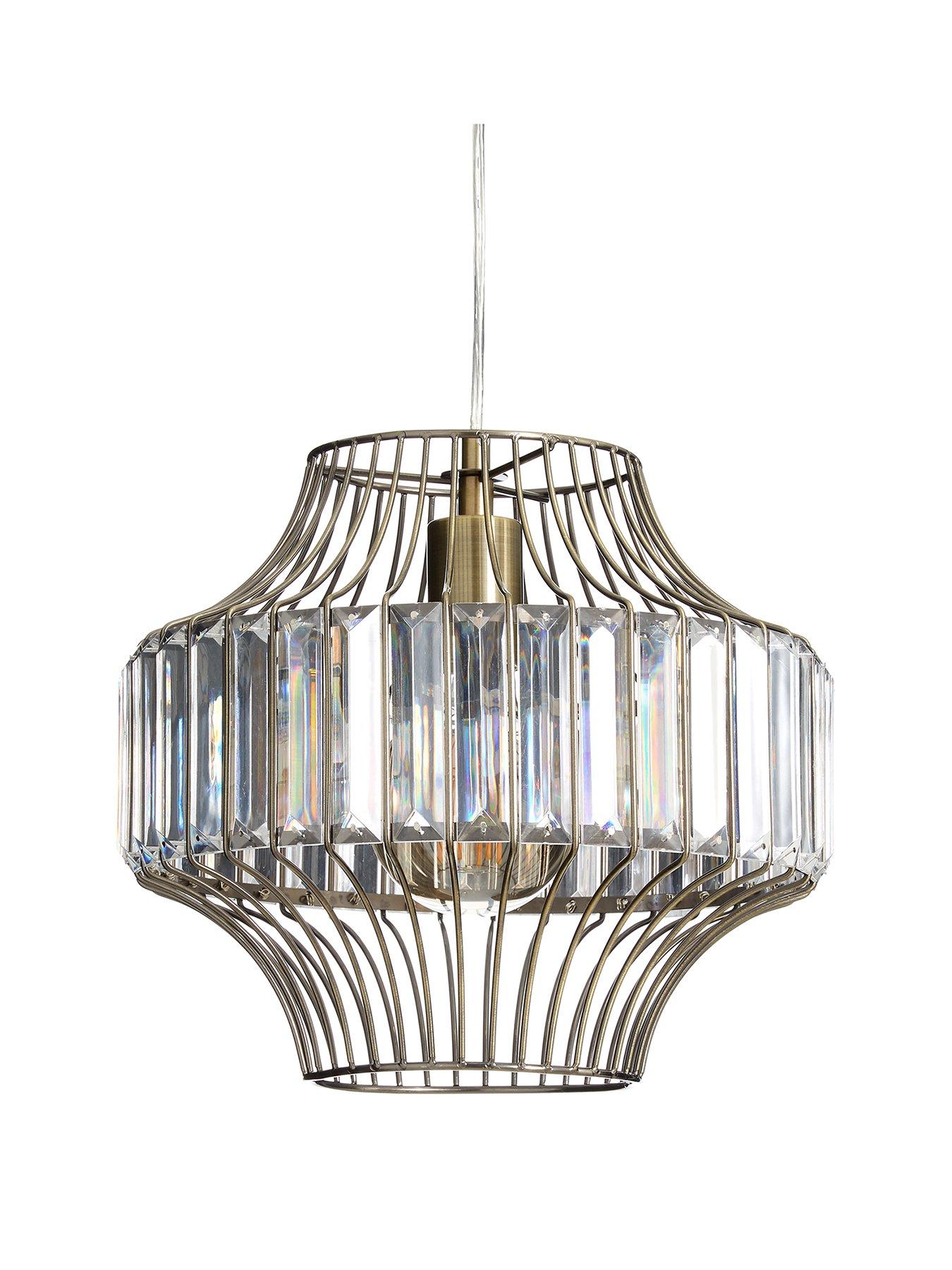 Alexa Ceiling Pendant Light Fixture - 100 cmPutting a glamorous style spin on the industrial trend, this Alexa ceiling light fixture features a stunningly shaped metal cage shade.Sitting in the centre is an acrylic plate with faceted edges that soften the look and refract the light as it passes through. This light fixture measures 100 cm (including cable).