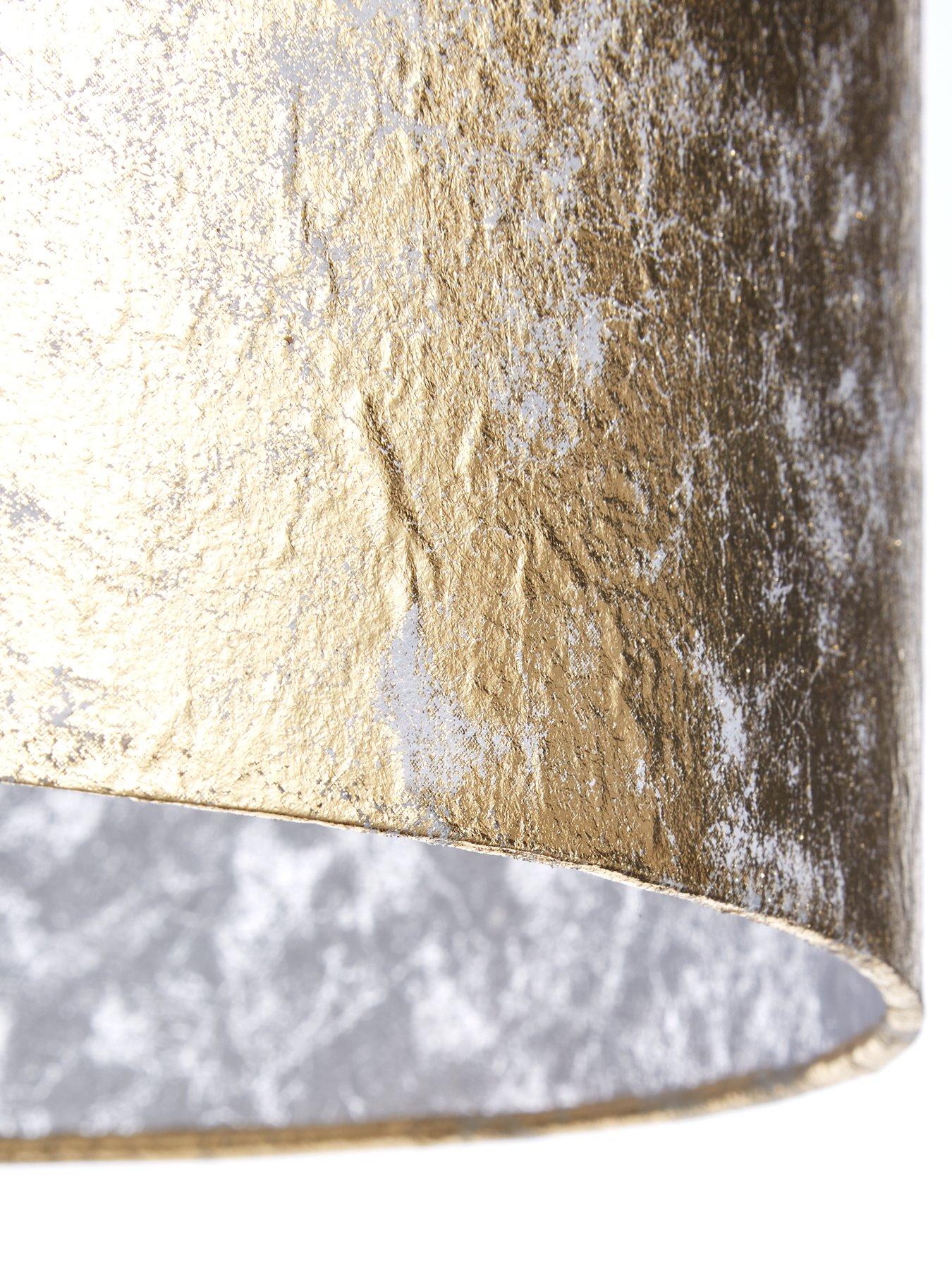 Athena Metallic Light Shade – 35 cm diameterGorgeous in gold with an attention-grabbing weathered finish, our Athena metallic light shade brings an instant injection of luxury beauty to your space. The metallic shimmer is full of charm, and it’s contrasted by a stunning silver interior, which has the same matching finish to complete the look.This shade is easy to fit with no need to wire it in, so you can see the effect it has on your room in an instant.