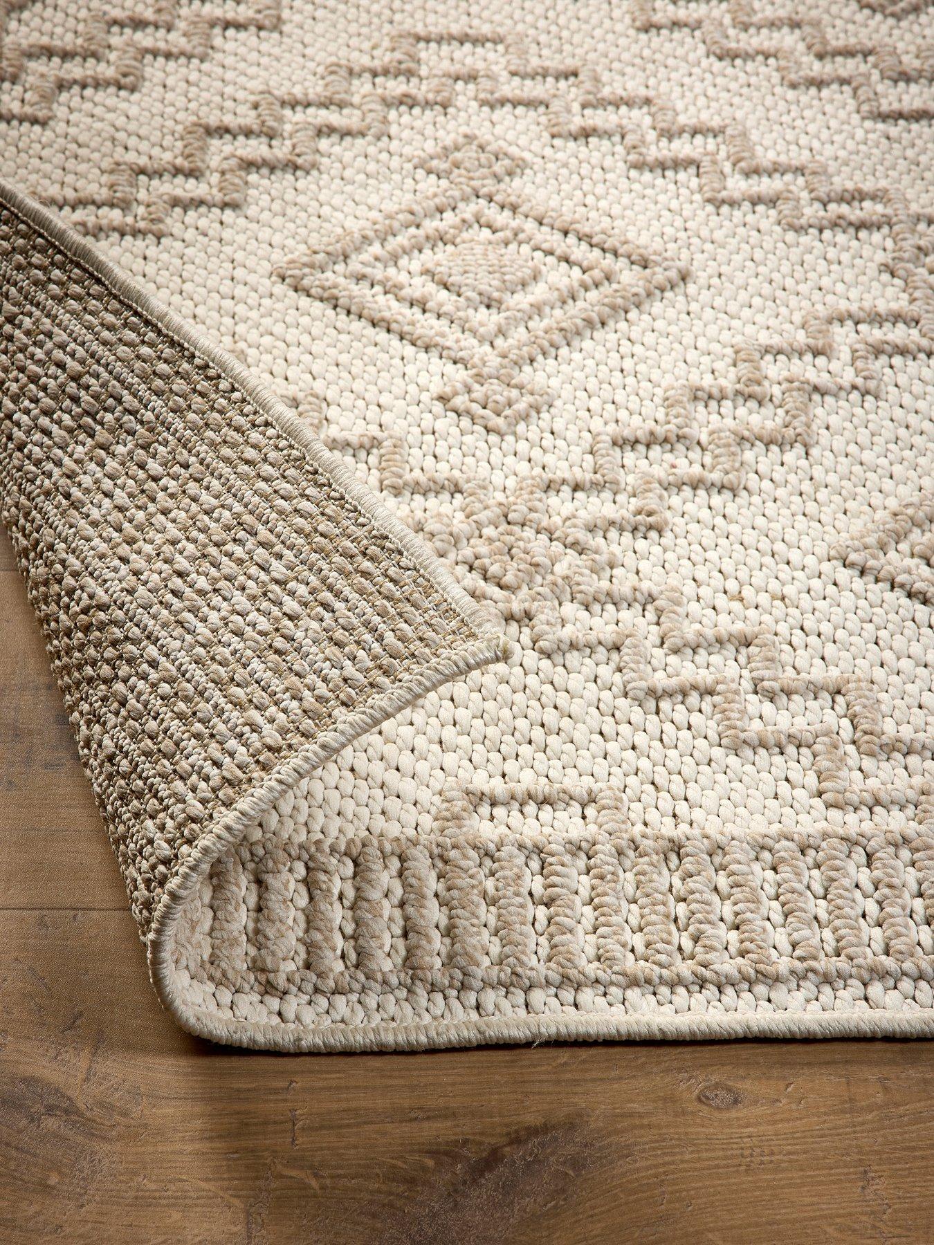 The Very Collection Atlas Diamond Flatweave Indoor/Outdoor RugThis rug features a repeated and raised diamond design with a striped border. Made from 100% polyester, this rug is hardwearing and will be perfect for adding a cosy touch to any busy home. Available in 2 colours and 3 sizes.