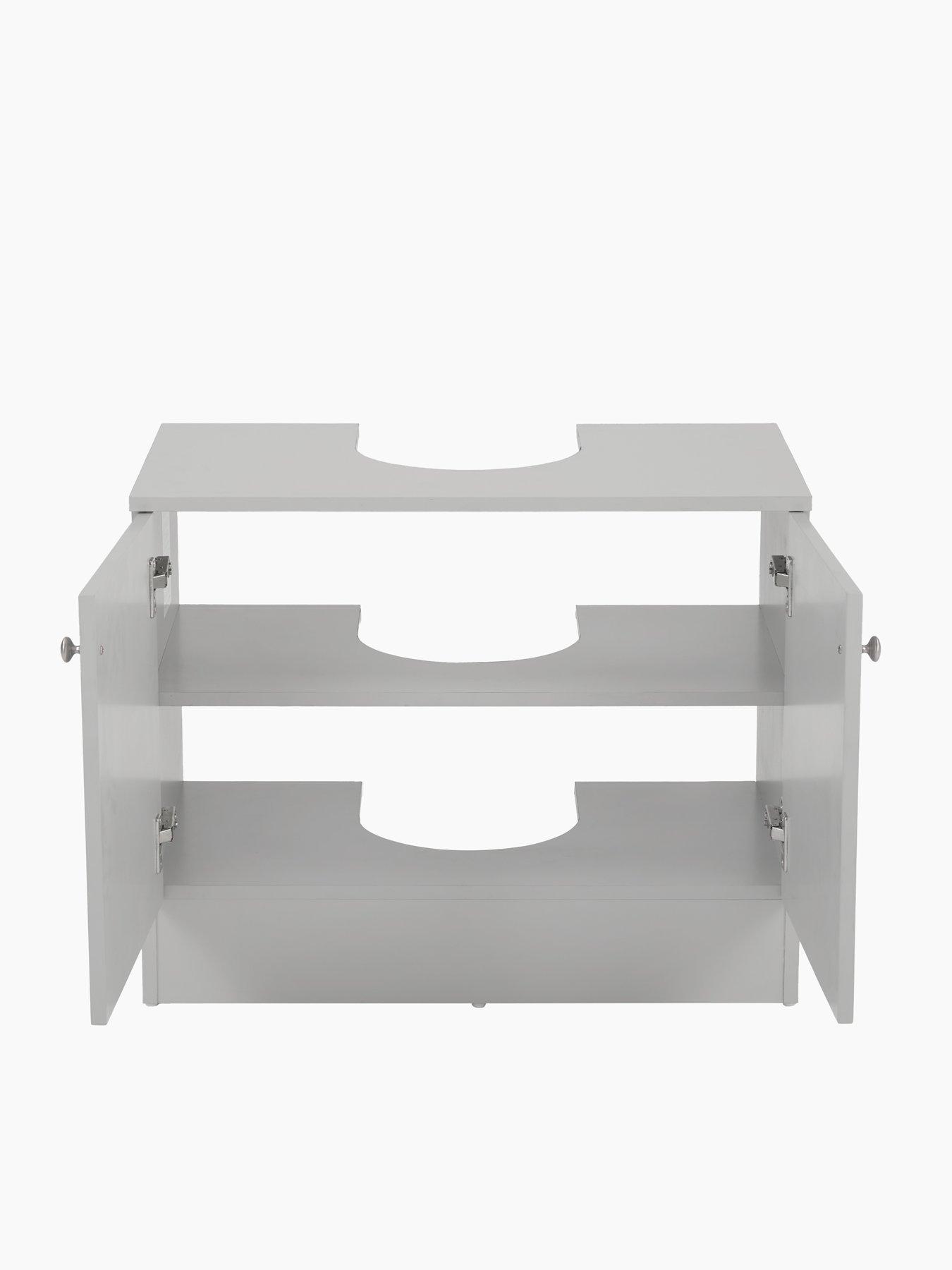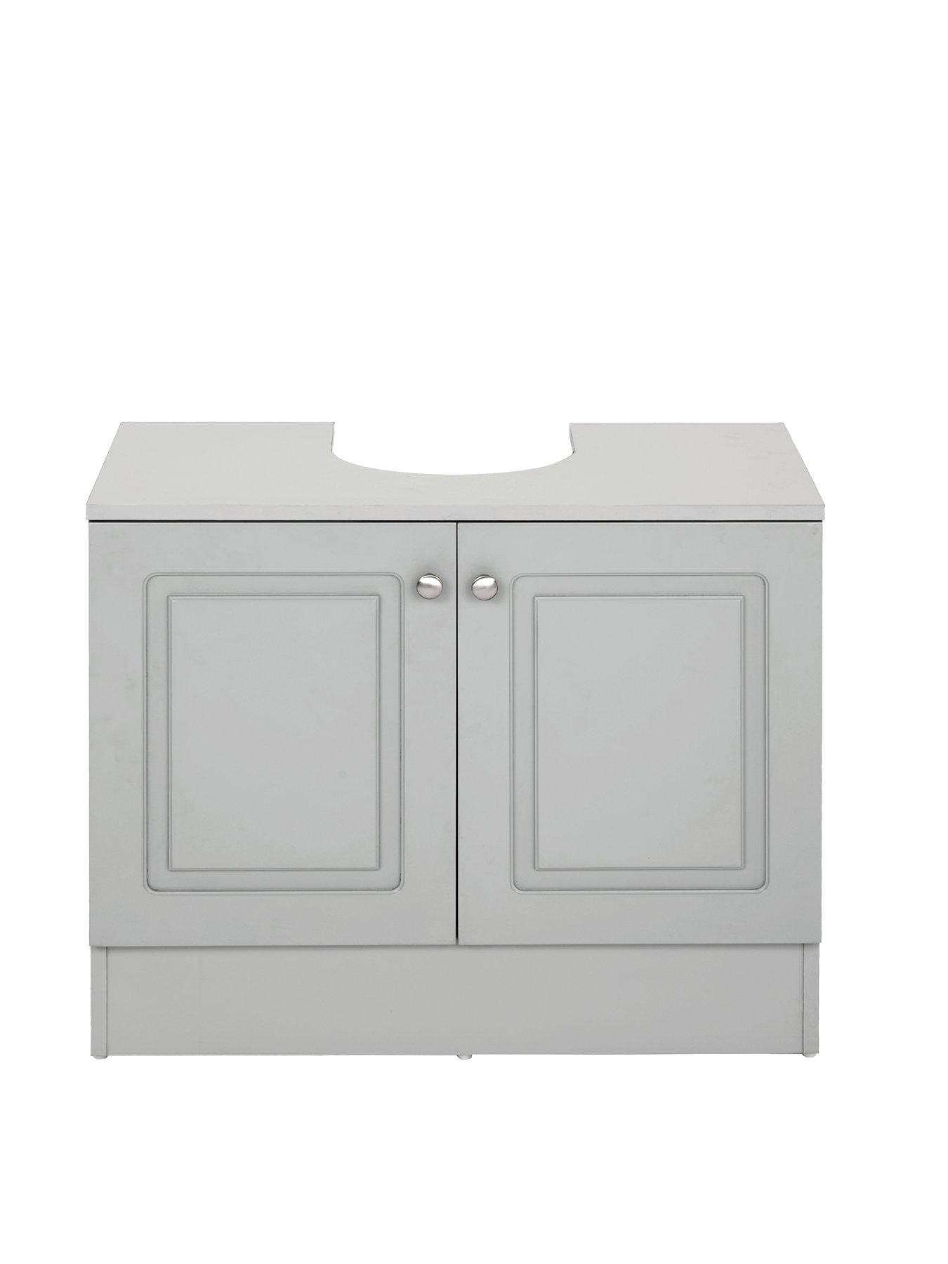 Very Home Avalon Under Sink Cabinet in Grey - FSC® CertifiedUpdate your bathroom with the elegance of the Avalon collection by Very Home.In a painted grey finish, this cabinet makes clever use of the space under your sink that usually gets wasted. Designed to slot neatly over the basin's pedestal, its doors feature decorative routed detail and are accented with metal knob handles. Inside there's a shelf where you can neatly store away cleaning products, spare loo rolls and so much more. Search Avalon to see the rest of this collection, then add other pieces from the range to create a stylish, organised bathroom or en suite. Please remember to measure your available space before ordering. Dimensions: Height 56, Width 70.5, Depth 37.5 cm