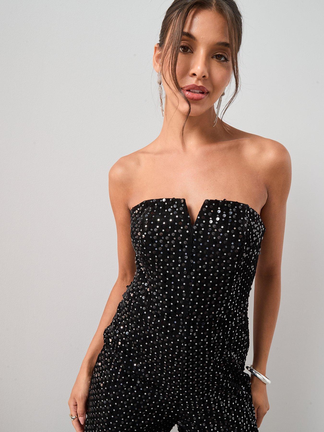 The Very Collection X Carol Byrne Bandeau Sequin Jumpsuit - BlackSize & Fit