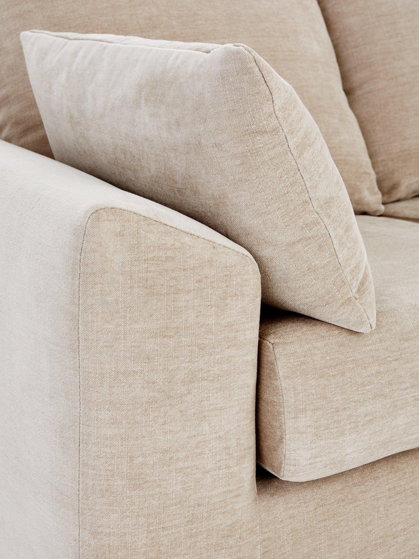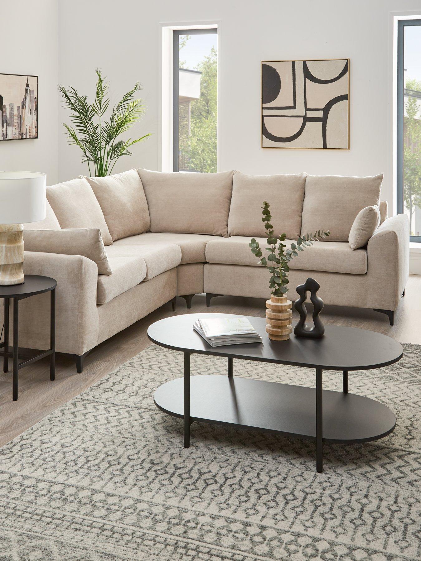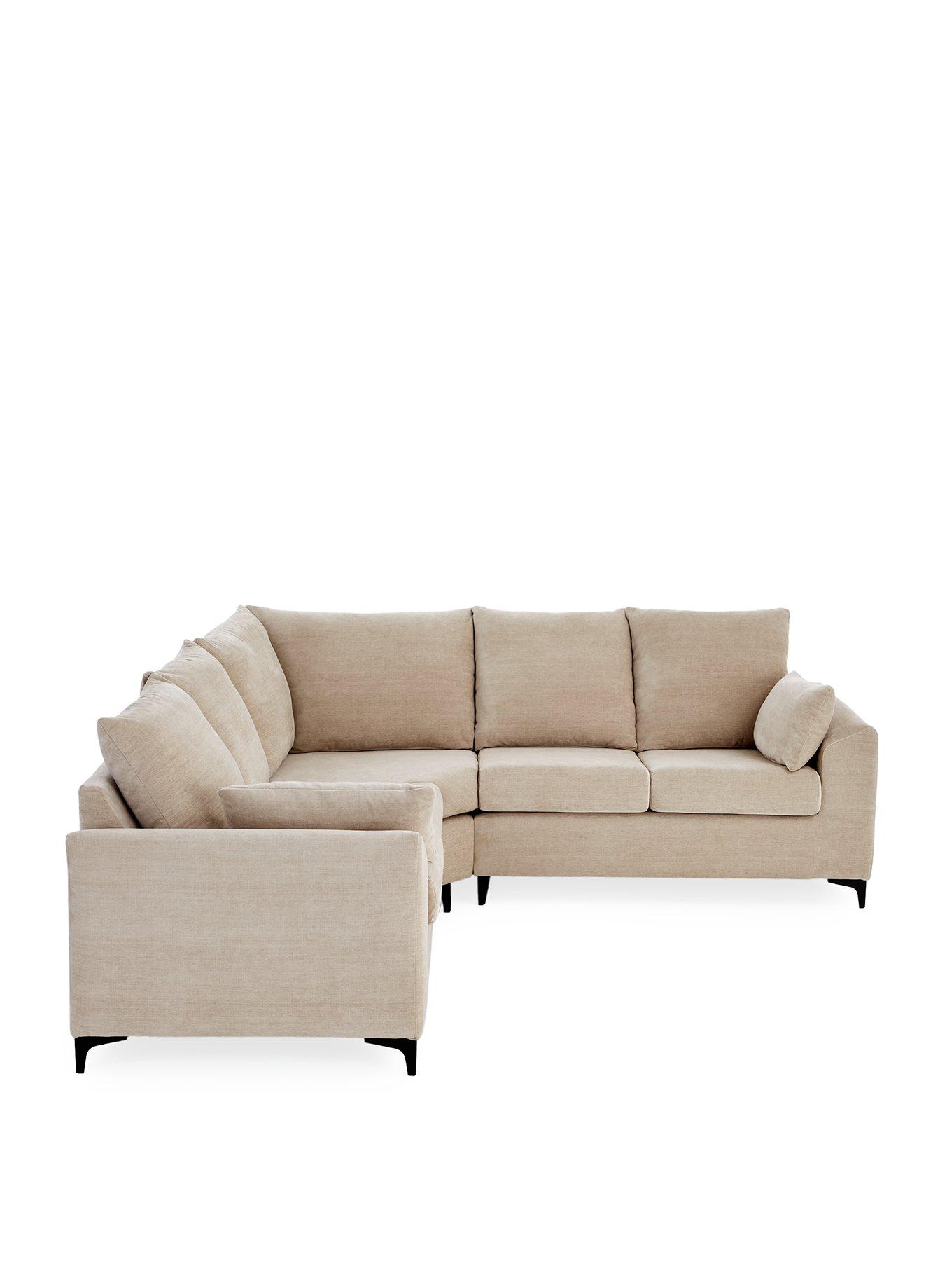 Part of the Barcelona collection by Very Home, this corner sofa is styled with clean straight lines which are offset by the curved inside arms and chunky arm cushions. Textural woven fabric is available in a choice of natural and grey options, and each one is detailed with modern metal right angle feet.