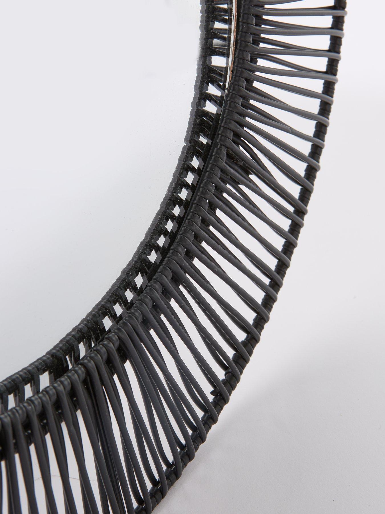 Black Poly Rattan Mirror 60x45cmThis bold oval mirror is ideal for any space in your home, from the living room to the hallway.Measuring 60 x 45 cm to provide plenty of light and depth, it's bordered by a striking frame made of a poly rattan in a contemporary black shade.