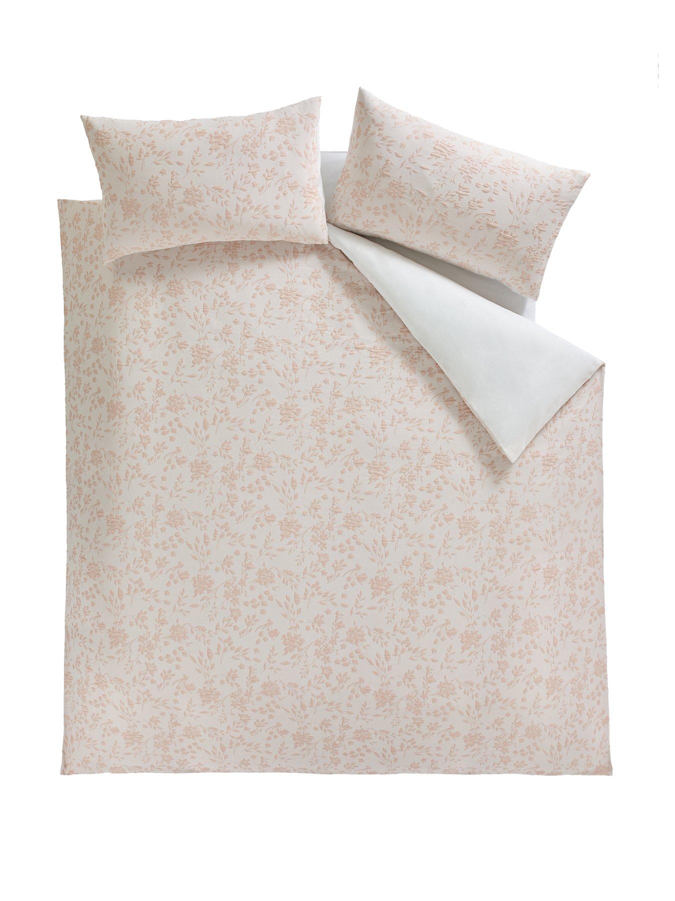 The Very Collection Bryony Floral Jacquard Duvet SetCrafted in a luxury jacquard fabric, this duvet set feels beautifully textured while remaining comfortable for everyday use. The delicate floral jacquard embroidery adds depth and timeless charm, creating an elegant, decorative finish on the bed. Finished with a plain reverse, it offers a clean contrast and effortless styling versatility.A set comprises one duvet cover plus two pillowcases.