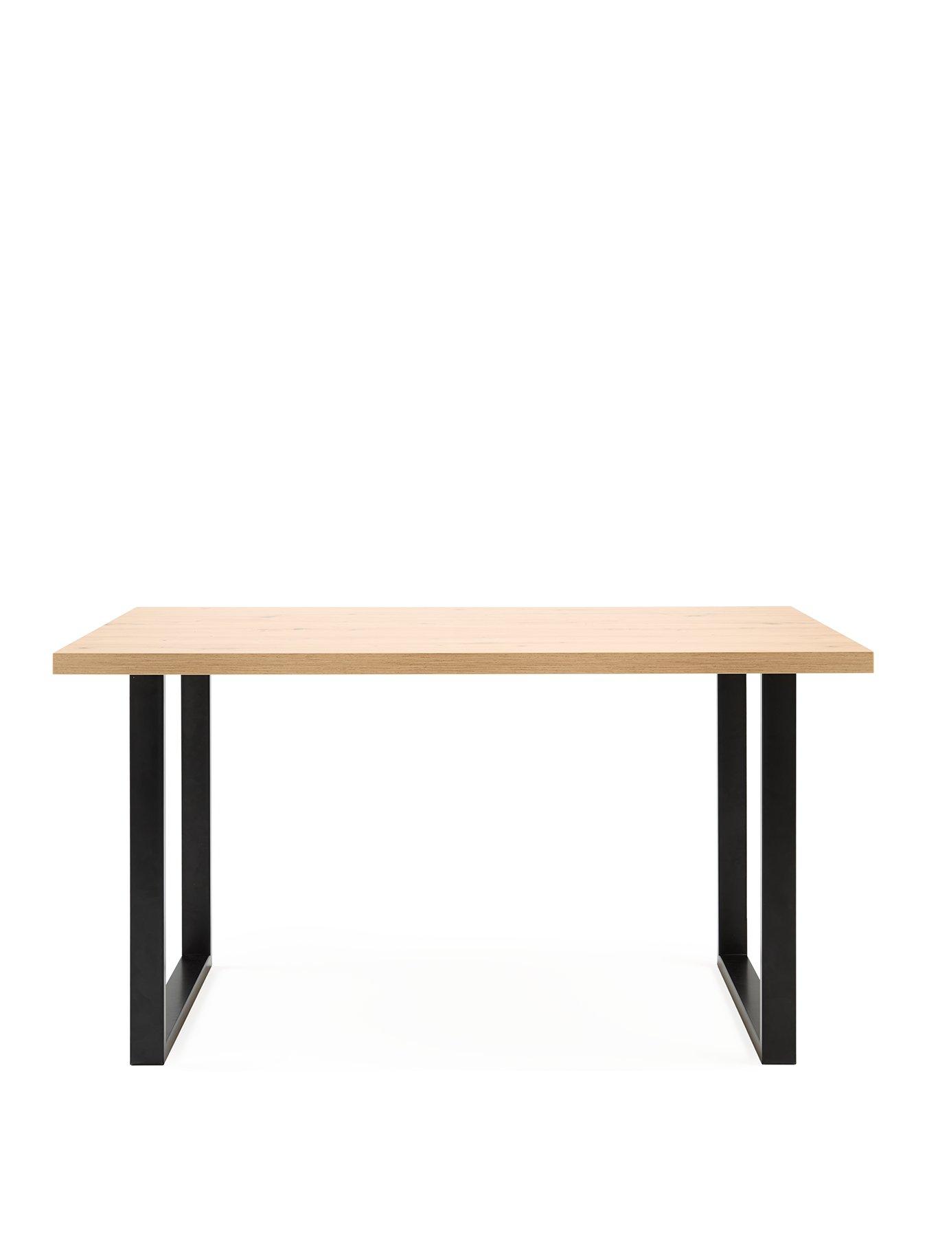 Very Home Burton 140 cm Dining Table in Oak Effect/Black - FSC® CertifiedModern and compact, this Burton dining table from Very Home is ideal for creating a statement-making space for mealtimes.Black powder coated metal ski legs offer an industrial edge and support a 140 cm long oak-effect table top that has a lightly grained shade that's rich in realistic knots. Easy to assembled, you can match it with some equally stylish dining chairs - check out our fantastic ranges to find some style inspiration. Please remember to measure your available space before ordering. Dimensions: Height 74.7, Length 140, Depth 90 cm