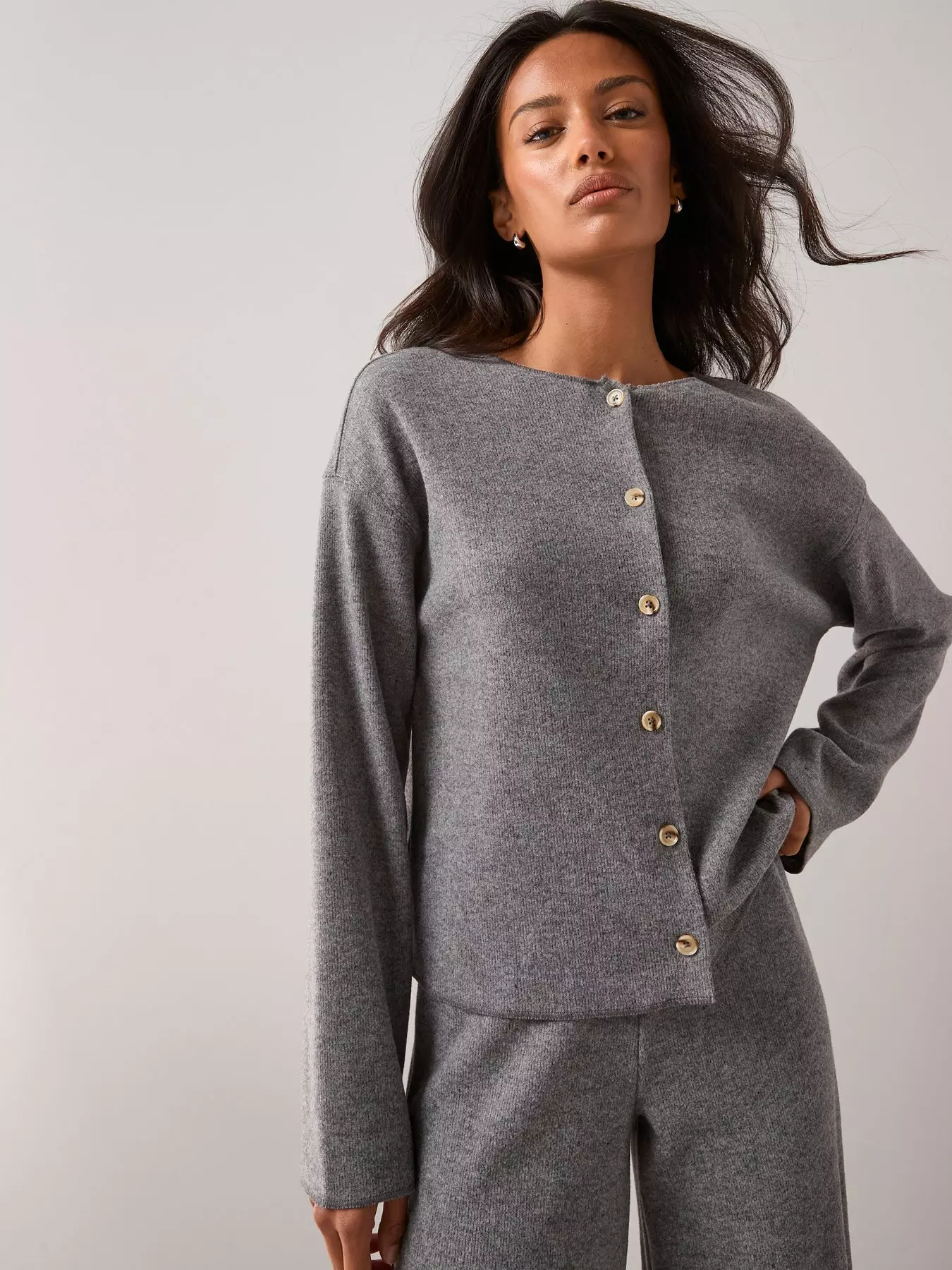 The Very CollectionButton Up Textured Cardigan Co-Ord - Grey