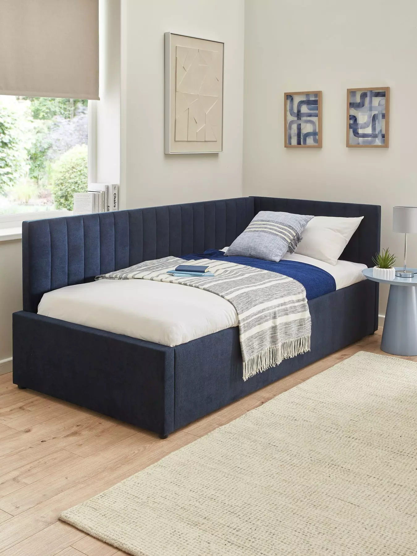 This day bed by Very Home is wrapped in a super soft fabric that comes in a bold blue shade. The side and back panel are detailed with stylish vertical stitching, and it's finished with sprung slats for comfortable mattress support.Buy the bed frame only or make an overall SAVING when you add a specially selected mattress (see 'mattress guide' below to learn which one might be right for you).