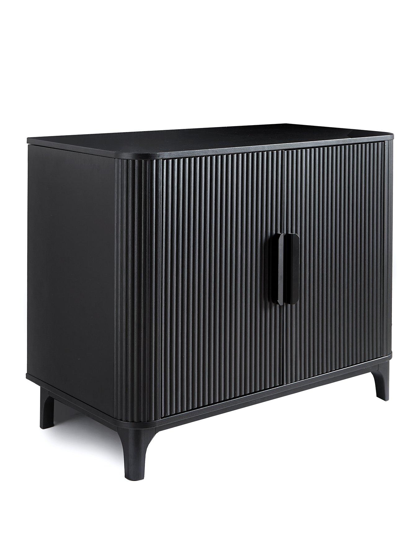 Very Home Carina Small Sideboard in Black - 90 cm wideFurniture gets a fashionable edge with this sideboard from Very Home's Carina collection.First there's the dramatic black wood-effect finish that adds a sleek accent to your living space. But the bits we really love are the rounded corners that soften the shape and are enhanced with the stunning ribbed detail - these vertical lines stand out brilliantly when the light hits them. The two doors are detailed with metal handles and behind them you'll find neat sectional shelving that lets you divide up everything from dinner sets to wine glasses. Available separately is a whole host of matching furniture from this range - search Carina to see the full collection. Please remember to measure your available space before ordering. Dimensions: Height 75, Width 90, Depth 43 cm