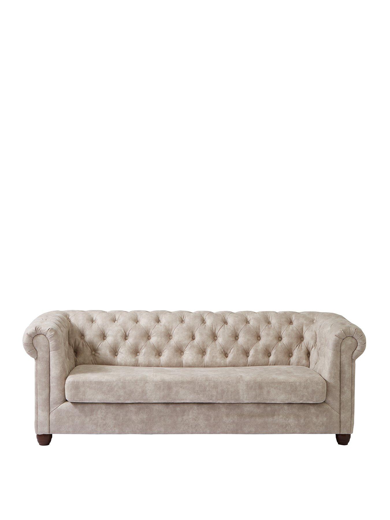 Chester Leather Look 3 Seater Sofa Bed in Chocolate, Black or Pebble - FSC® CertifiedClassic silhouetteInspired by an iconic sofa shape, the Chester features the classic details you love, like the rolled back and arms with button detailing and the turned wooden feet. Affordable leather look The mottled leather look flaunts a range of soft shades and comes in a choice of chocolate, black and pebble. It's also a great alternative to real leather, giving you the look you love for a far lower price. Time to turn in When overnight guests come to stay, simply remove the cushions and use the 3 fold metal frame to quickly convert it from a sofa into a comfy bed. Free Swatch Service Get a feel for this fabric before you buy with our FREE swatch service. Simply email SwatchOrder@ClickSpares.co.uk with your name and address, along with the sofa range name, item number, colour choice and the name of the retailer’s website you’re ordering from. Your swatches will be delivered within 5 working days (subject to availability). Please remember to measure your available space before ordering. Dimensions: Height 72, Width 203, Depth 86 cm