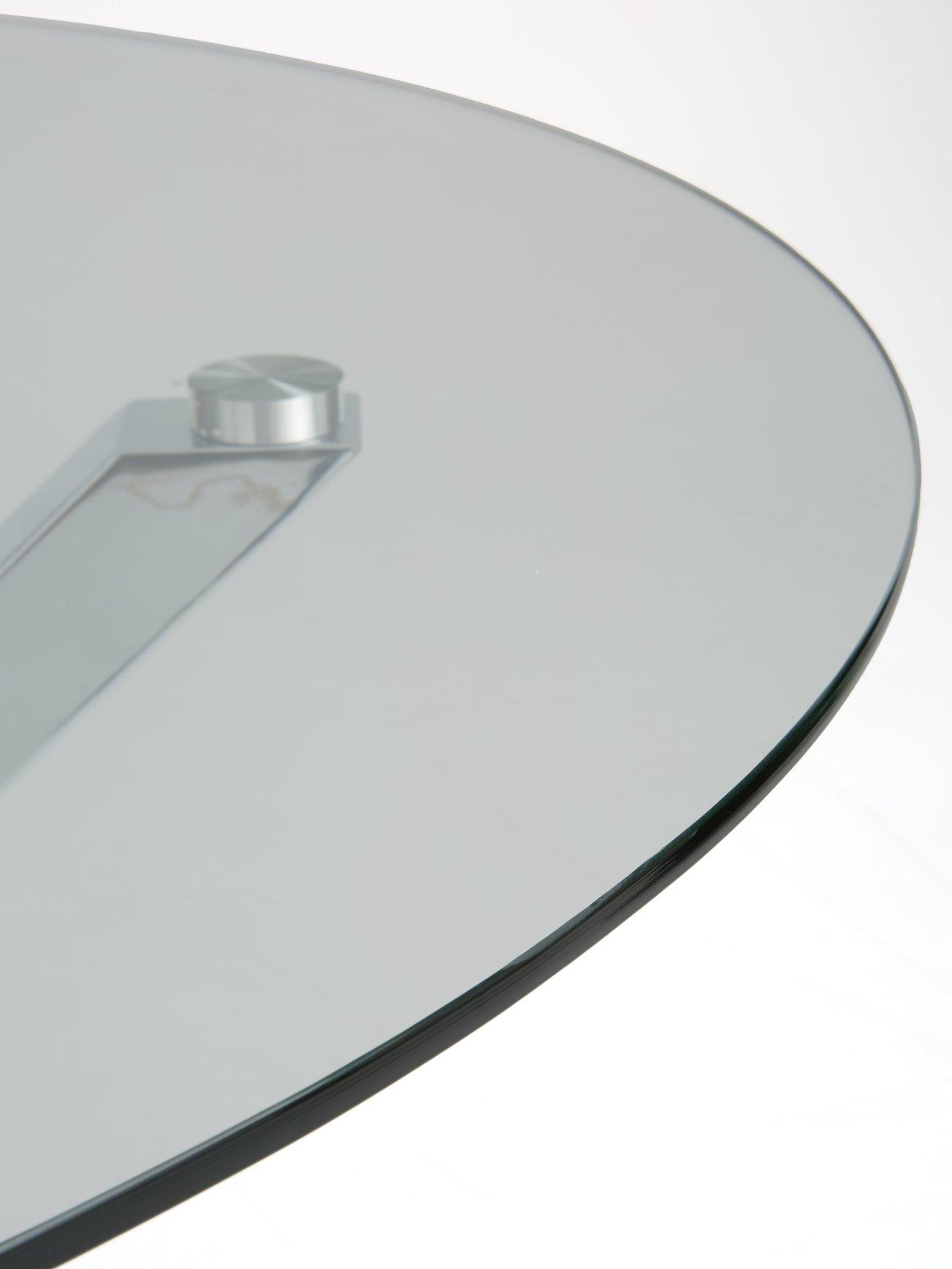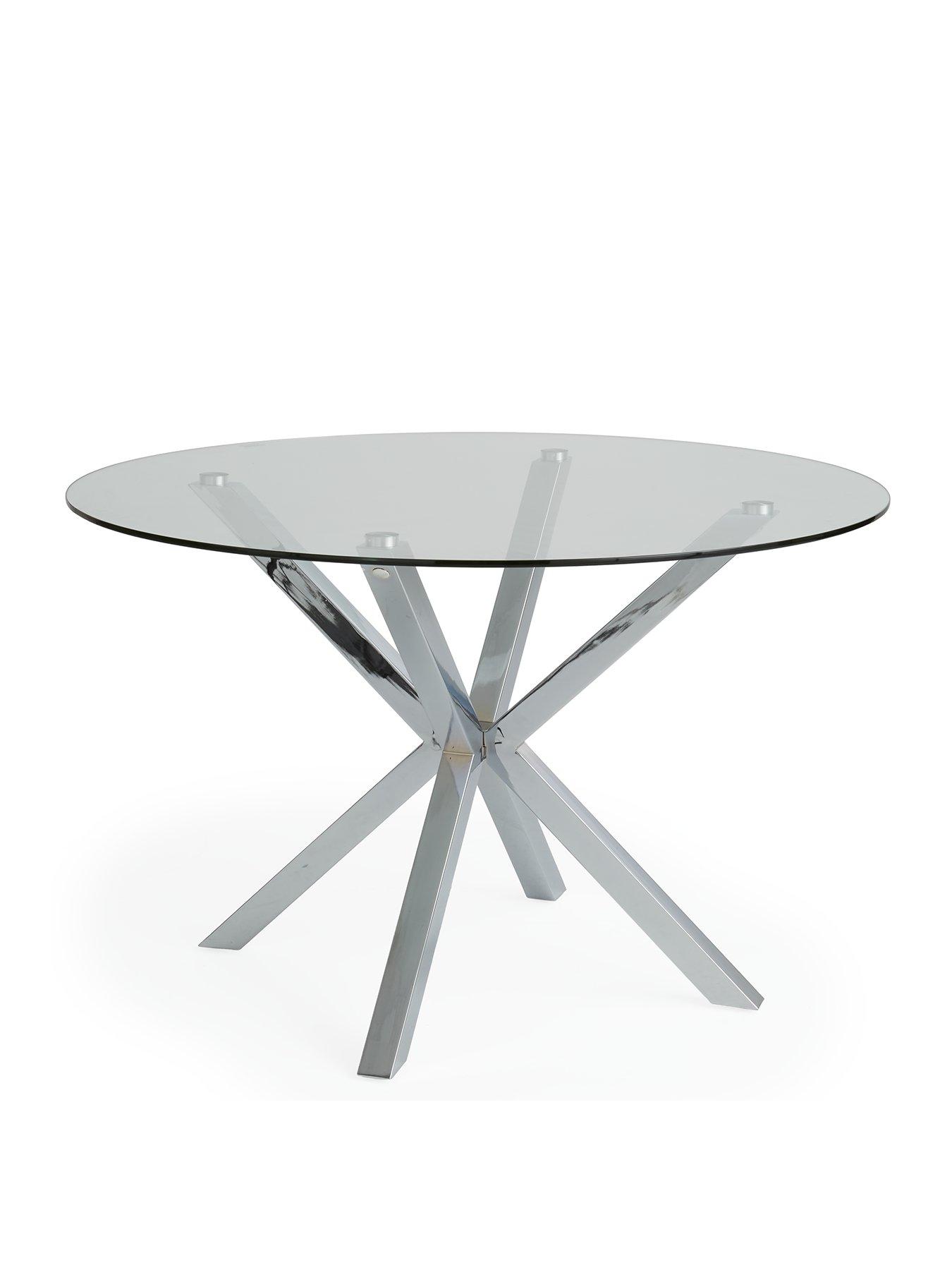 Very Home Chopstick 120 cm Round Dining Table in ChromeCombining practical function with dazzling design, this dining table from Very Home will transform your family meals and dinner parties. Four sleek chrome metal 'chopstick' legs come together at their centre points, creating a striking base that supports a smooth, shiny circular clear glass table top. At 120 cm in diameter, the table can comfortably accommodate four chairs.This table is also available to buy along with a range of different chairs. Search Chopstick to see the full range. Please remember to measure your available space before ordering. Dimensions: Height 75.3, Diameter 120 cm