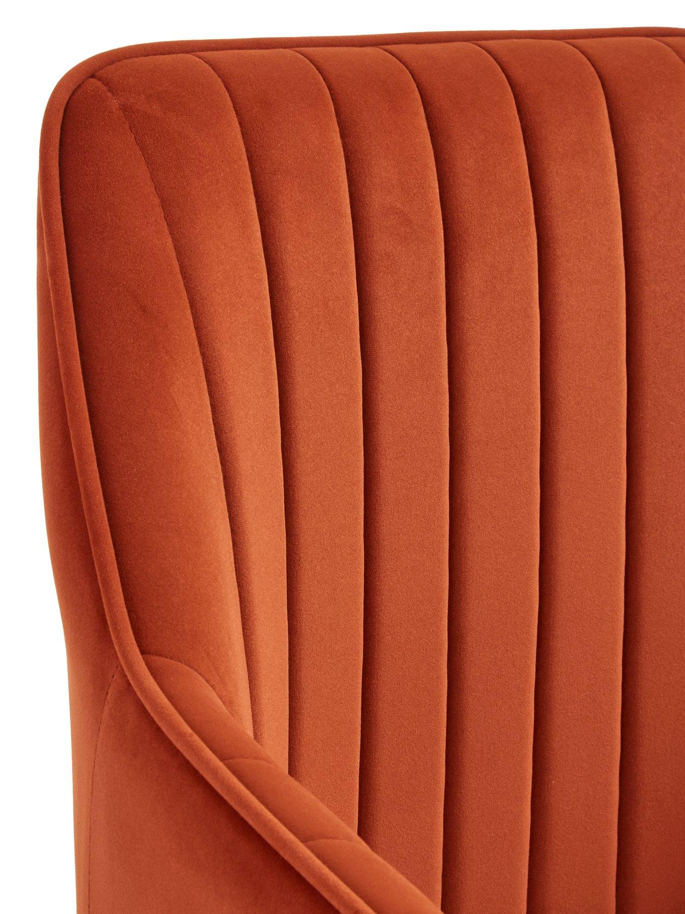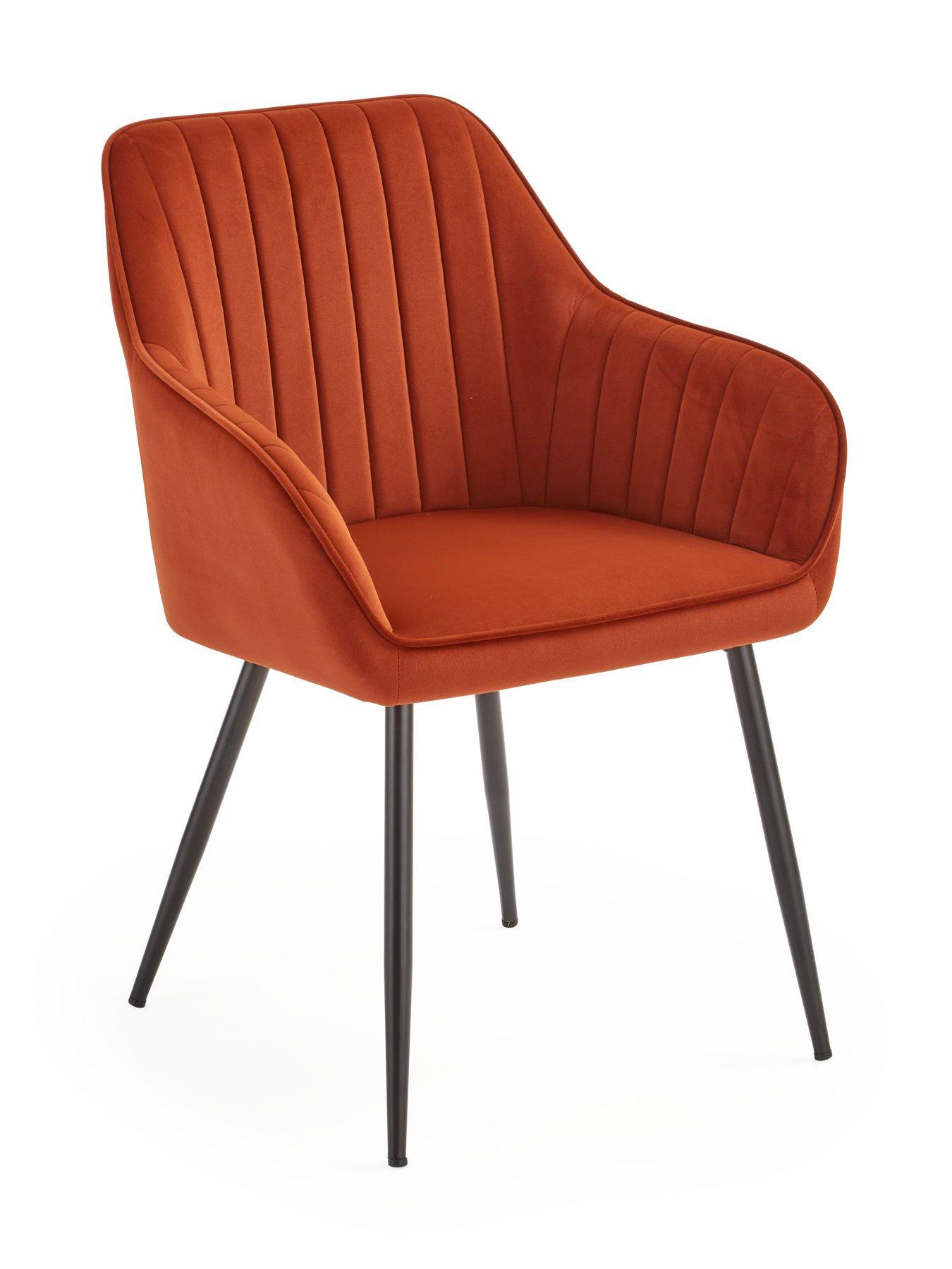 Very Home Chopstick 130 cm Rectangular Glass Top Dining Table plus 4 Alisha Chairs in Black/RustChopstick 130 cm Rectangular Dining TableCombining practical function with dazzling design, this dining table from Very Home will transform your family meals and dinner parties. Four sleek black metal 'chopstick' legs come together at their centre points, creating a striking base that supports a smooth, shiny rectangular black glass table top. At 130 cm in diameter, the table can comfortably accommodate four chairs. 4 Alisha Chairs Wrapped in a wonderfully textured fabric, their stunning rust colourway is contrasted by the trendy Scandi-style black legs that give them an eye-catching mid-century modern vibe. Please remember to measure your available space before ordering. Dimensions: Table - Height 75.2, Length 130, Width 80 cm Chairs - Height 83, Width 58.5, Depth 55 cm