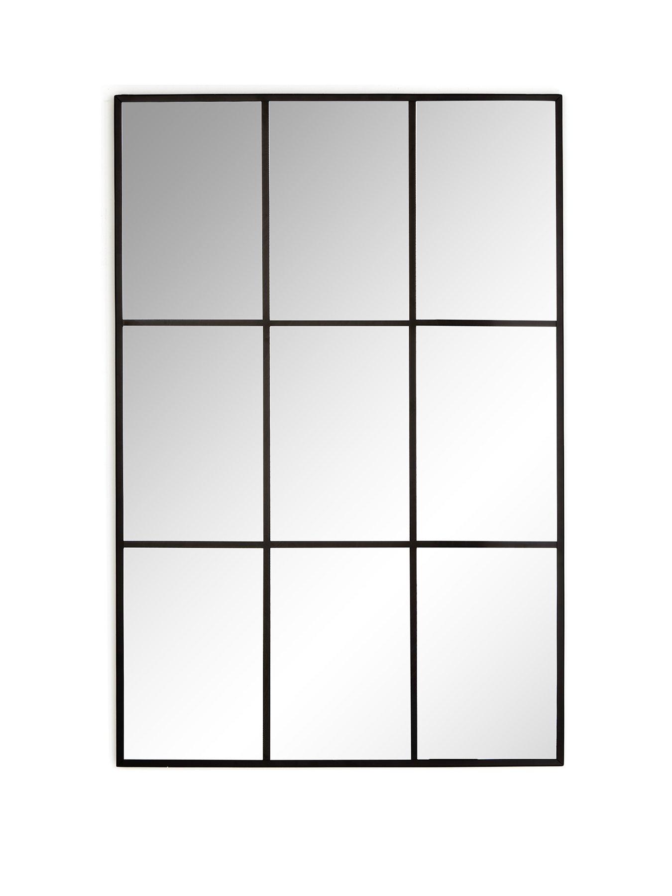 Cino Window Pane Mirror - Black 60x90cmDesigned by Very Home, the Cino wall mirror captures your attention with a gorgeous window-like appearance.Measuring 60 x 90 cm, it has a large surface area that helps to increase the perception of light and depth in your space, while the black frame and coordinating glazing bar-inspired accents build the impression of a classy window. This mirror is vertical hanging, making it the ideal finishing touch for a fabulous feature wall.
