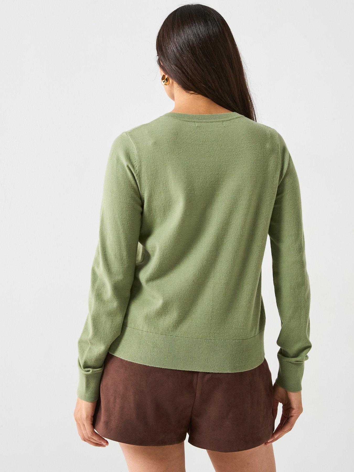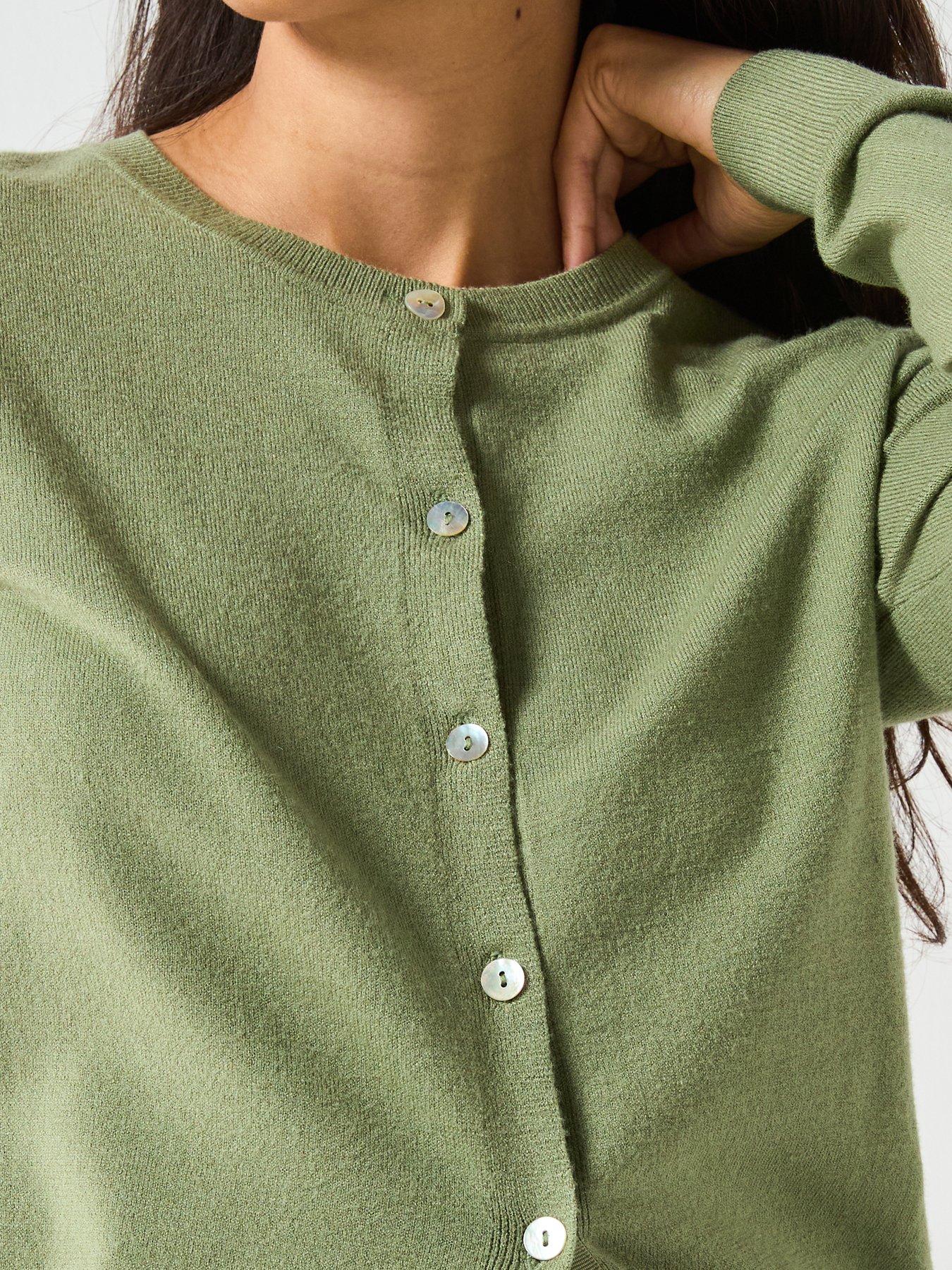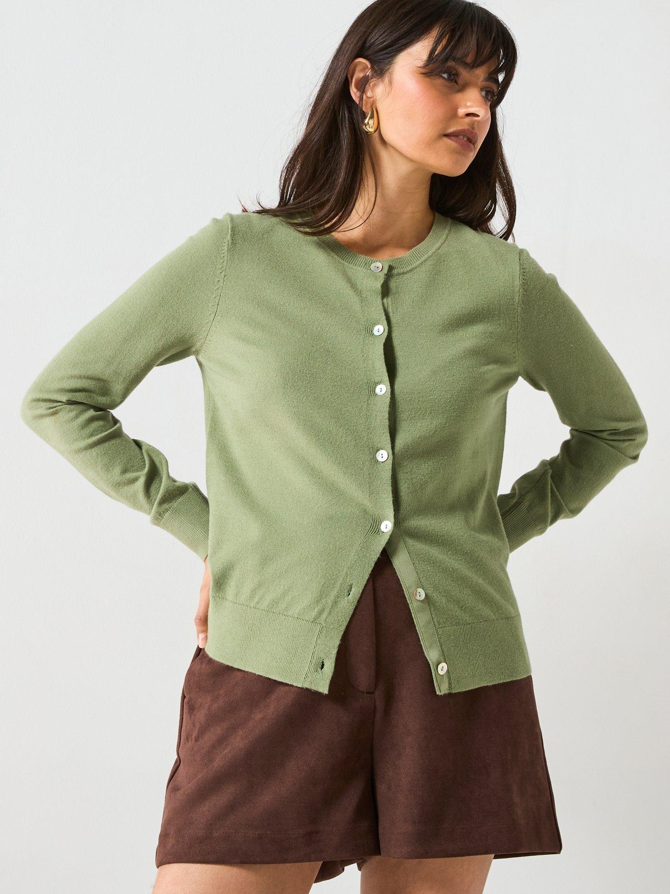 V by Very Classic Comfort Crew Neck Cardigan - Sage