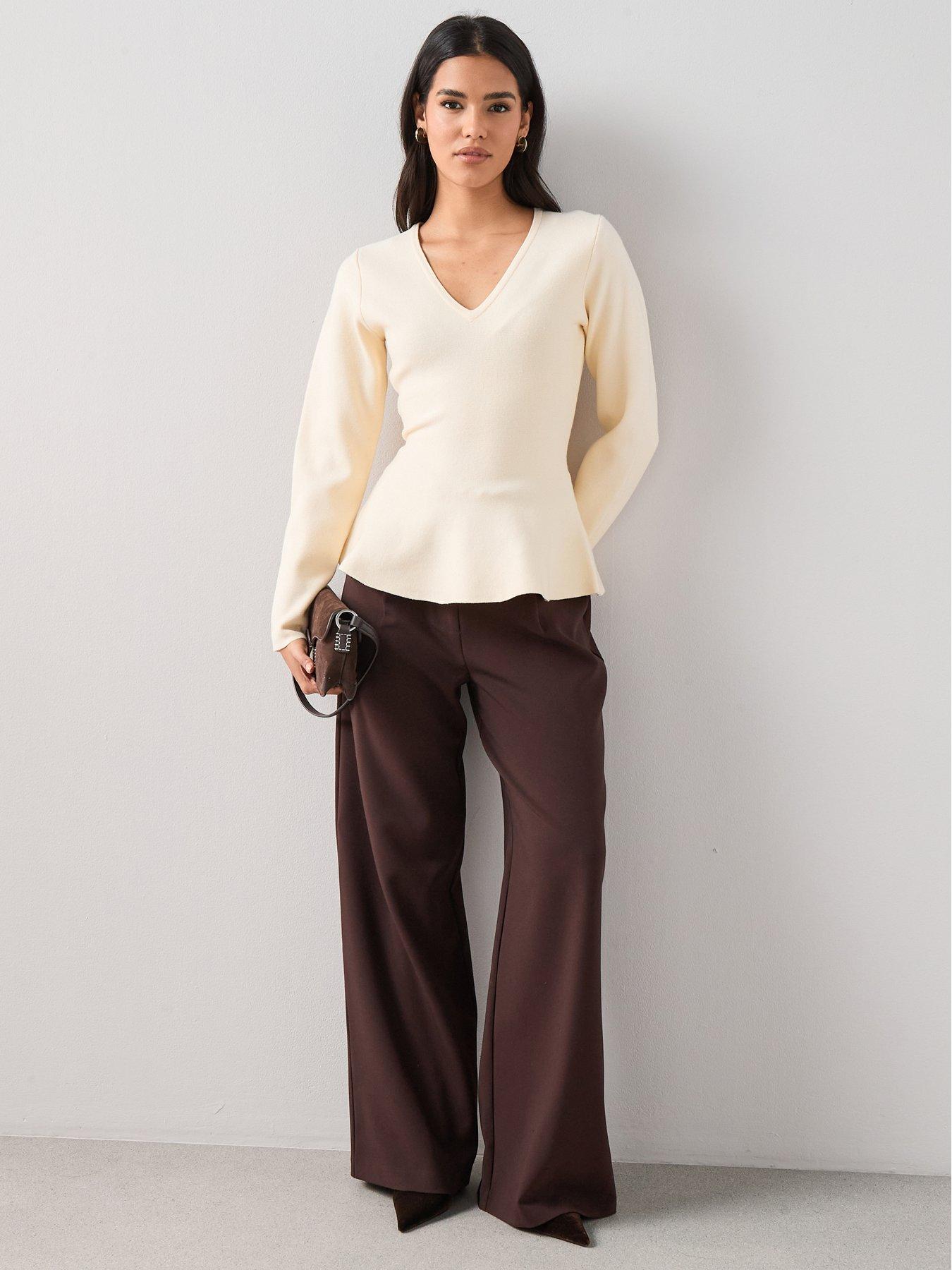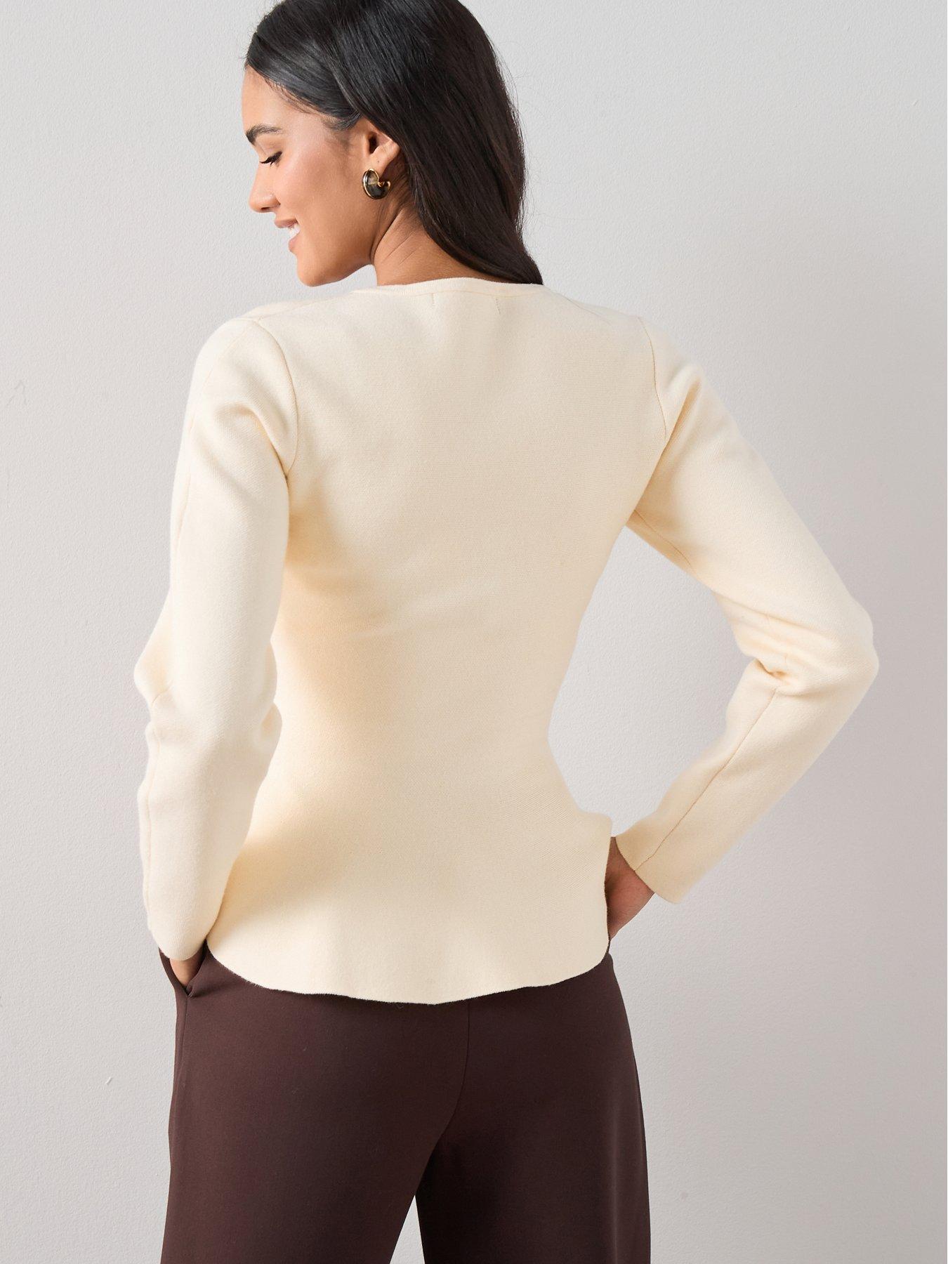 The Very Collection Compact Knit V Neck Peplum Jumper - YellowSize & Fit