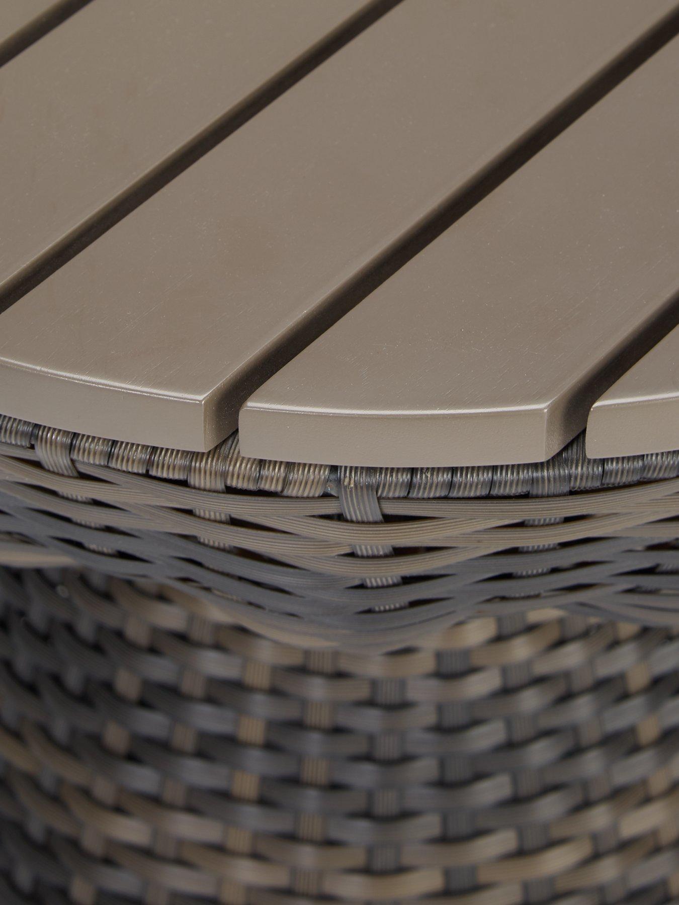 This Coral Bay Rattan Side Table is a creative addition to your outdoor space.This stylish poly rattan table features a smart acacia top and a uniquely shaped base. A cool and contemporary addition to your outdoor space, it's the perfect place to store drinks and snacks on a sunny day.This table is designed to match our Coral Bay range of outdoor furniture (sold separately).
