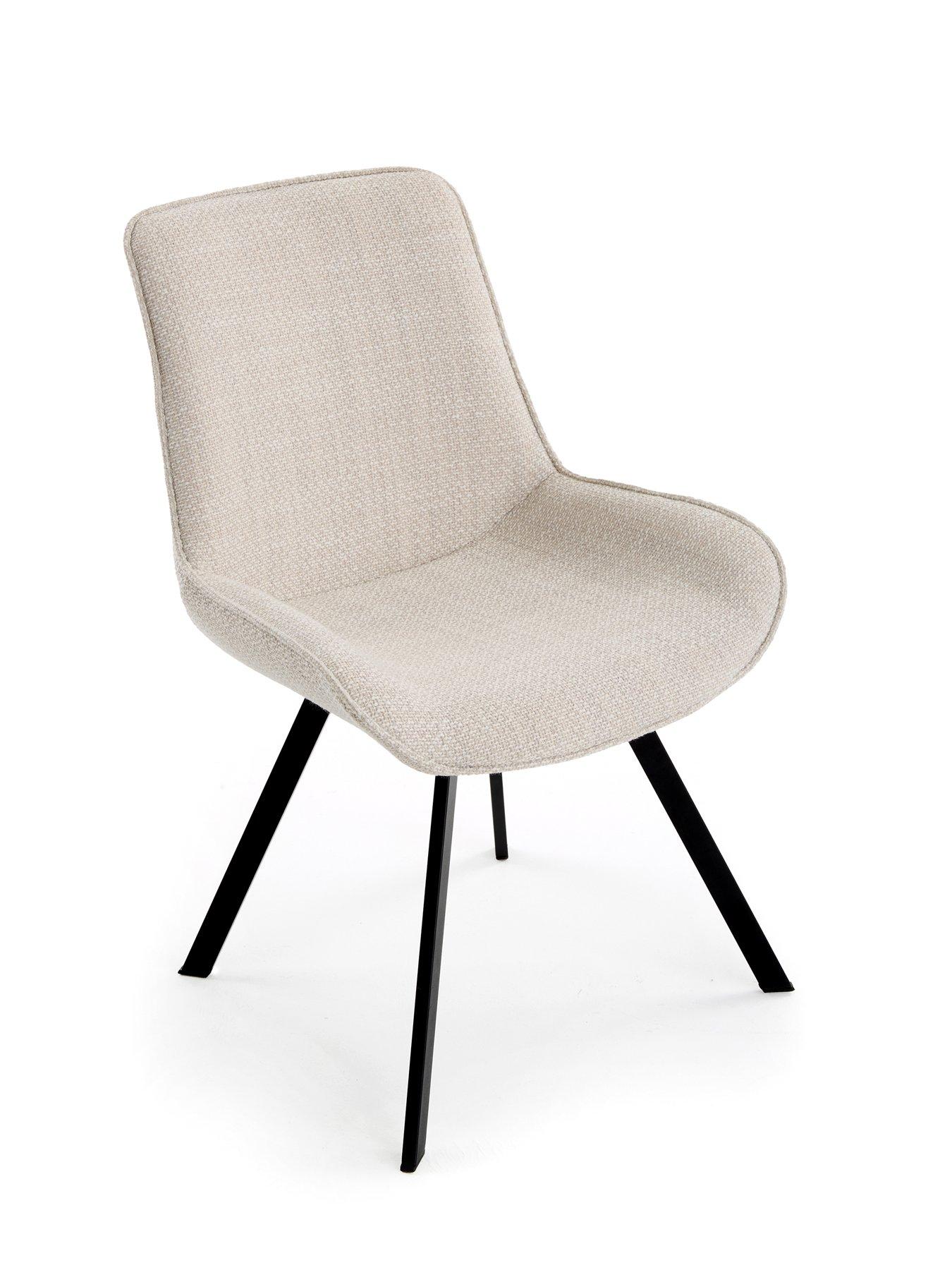 Very Home Corbin 160-200cm Extending Dining Table plus 6 Arabella Dining ChairsThe Corbin table has a modern design with a marble-effect top sitting on chunky black metal legs which are splayed for a Scandi-inspired style. It measures 160 cm in length, and can be easily extended to 200 cm when extra guests come to dinner - more than enough room to accommodate the six Arabella chairs it comes with.These have a stylish and eye-catching shape, along with padding for softness. They're upholstered in a textural grey fabric, while black metal powder coated splayed legs give them an echo of Scandi charm to match the table. Please remember to measure your available space before ordering. Dimensions: Table - Height 75.5, Length 160-200, Width 90 cm Chairs - Height 82.5, Width 55.5, Depth 44 cm