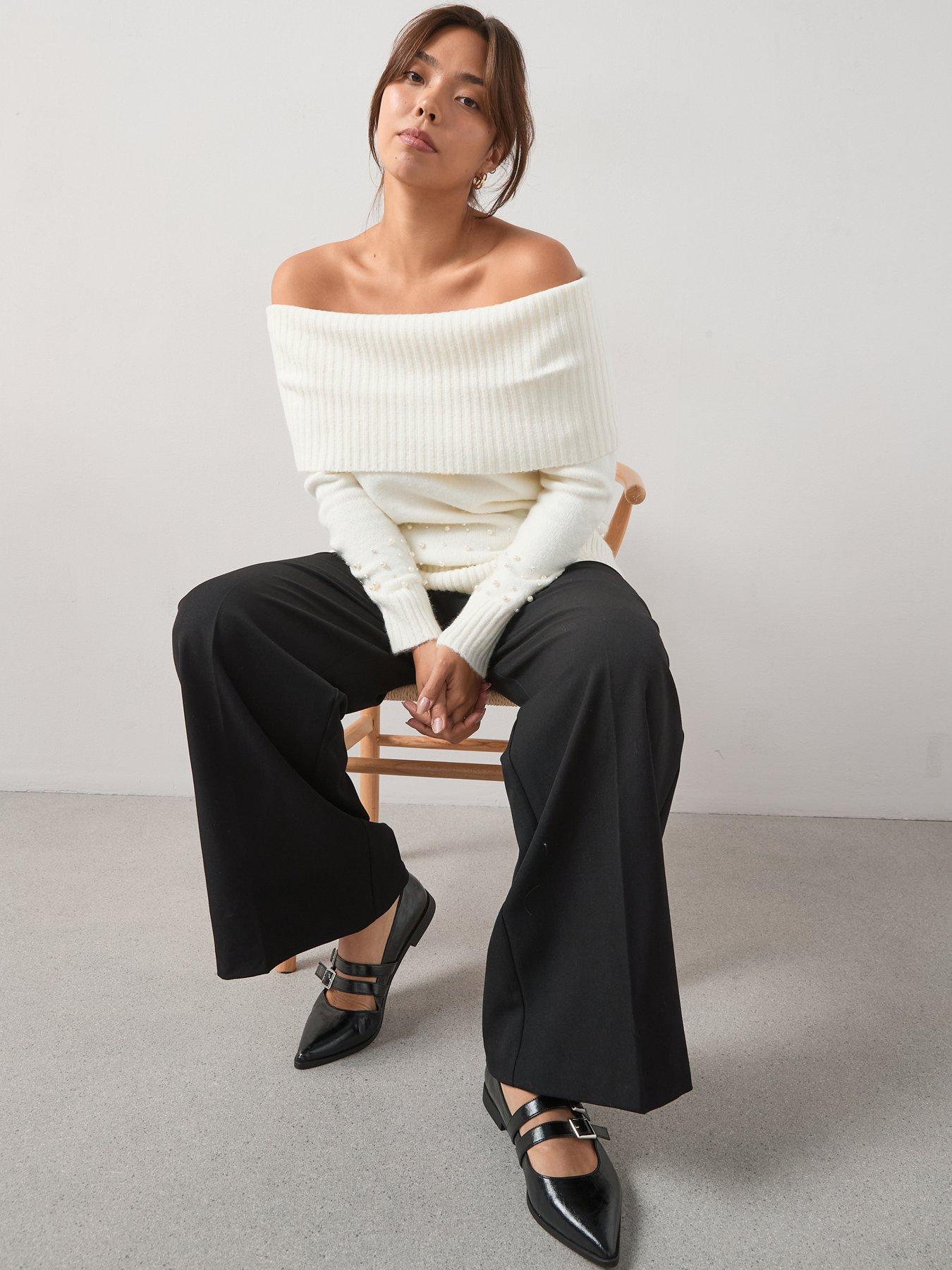 The Very Collection Curve Pearl Trim Off Shoulder Jumper
