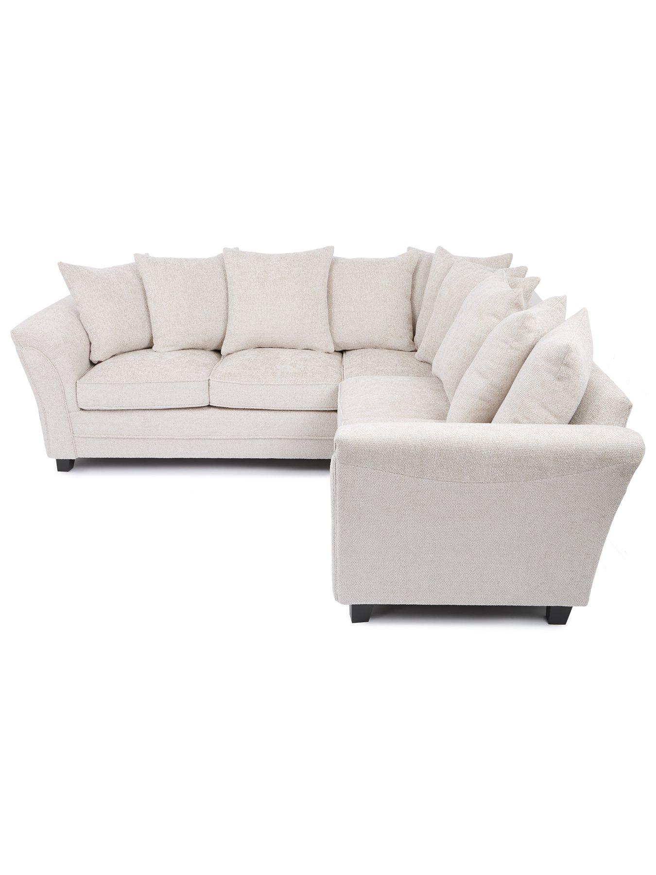Very Home Dury Chunky Weave Scatterback Corner Group Sofa in Natural - FSC® CertifiedH 92 x W 235 x D 235 cmHomely comfort Dury is upholstered in a richly textured chunky woven chenille that's perfect for kicking off your shoes and curling up on - what better fabric for the large, inviting proportions of this corner group. It comes in a smart natural shade that will easily match your existing colour scheme. Style embellishments Fashionable flared arms with pintucked detail to the front rise up to an eye-catching point, creating a narrow profile that's beautifully offset by the plump fibre-filled scatterback cushions. Echoing the angle of the sides are the smartly shaped block feet. Free Swatch Service Get a feel for this fabric before you buy with our FREE swatch service. Simply email SwatchOrder@ClickSpares.co.uk with your name and address, along with the sofa range name, item number, colour choice and the name of the retailer’s website you’re ordering from. Your swatches will be delivered within 5 working days (subject to availability). Please remember to measure your available space before ordering. Dimensions: Height 92, Width 235, Depth 235 cm