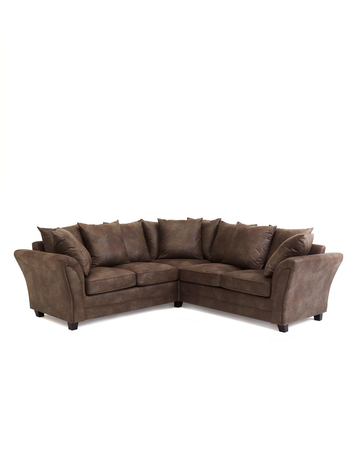 Very Home Dury Leather Look Corner Group Sofa in Chocolate - FSC® CertifiedH 92 x W 235 x D 235 cmThe look you love An affordable alternative to real leather, this leather look upholstery comes in a rich chocolate colour for a little extra luxury. Style embellishments Fashionable flared arms with pinched detail to the front rise up to an eye-catching point, creating a narrow profile that's beautifully offset by the plump fibre-filled scatter cushions. Echoing the angle of the sides are the smart feet that add a little shine to the sofa. Free Swatch Service Get a feel for this fabric before you buy with our FREE swatch service. Simply email SwatchOrder@ClickSpares.co.uk with your name and address, along with the sofa range name, item number, colour choice and the name of the retailer’s website you’re ordering from. Your swatches will be delivered within 5 working days (subject to availability). Please remember to measure your available space before ordering. Dimensions: Height 92, Width 235, Depth 235 cm