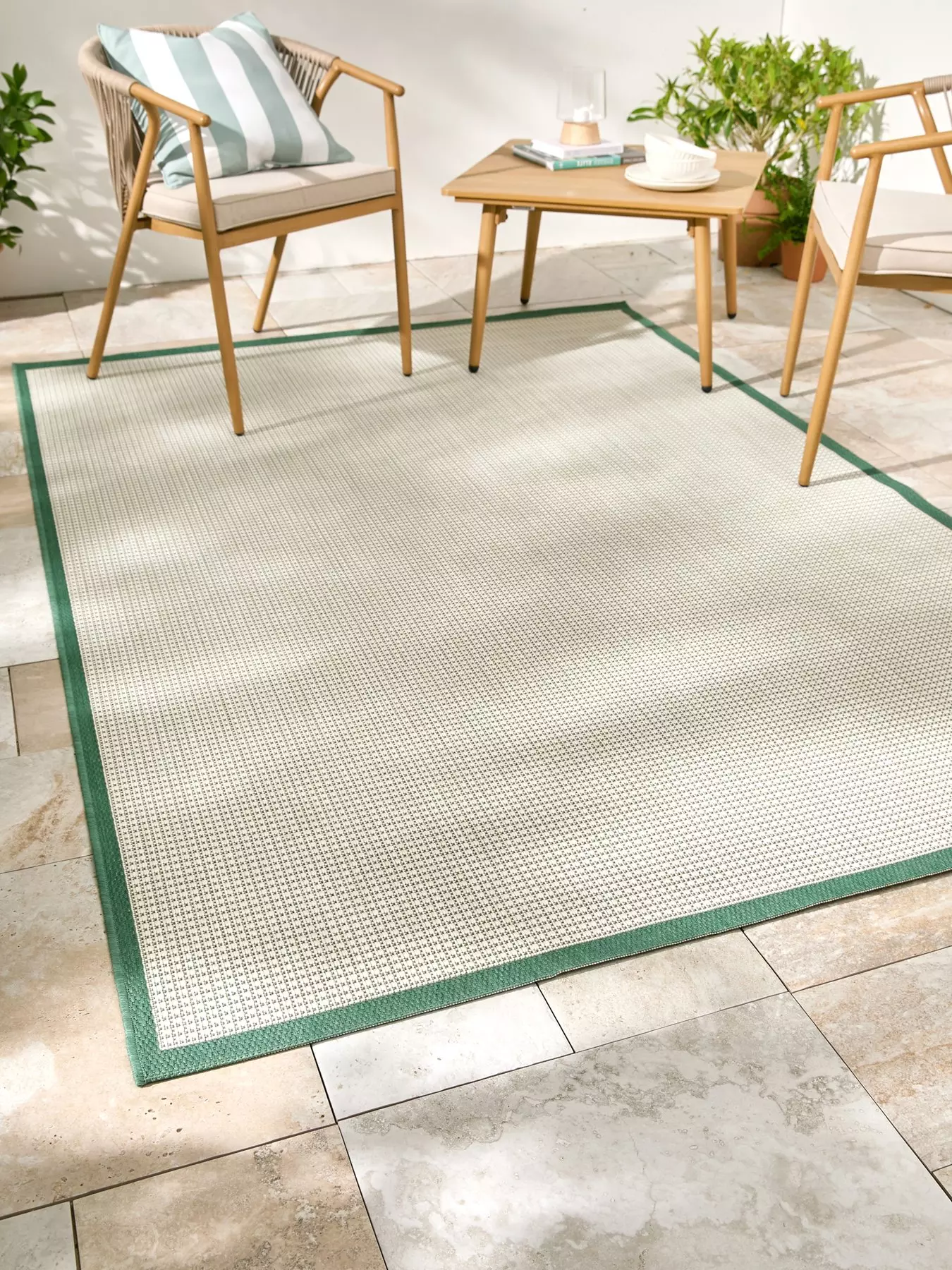 Elevate your in-or-outdoor spaces in an instant with the timeless, hard-wearing charm of Very Home’s Element Border Rug.The classic green palette is full of versatility and works well with simple, minimalist spaces, as well as brighter settings. It’s adorned with subtle checks all over, and finished with a plain border to build depth and dimension in the look.