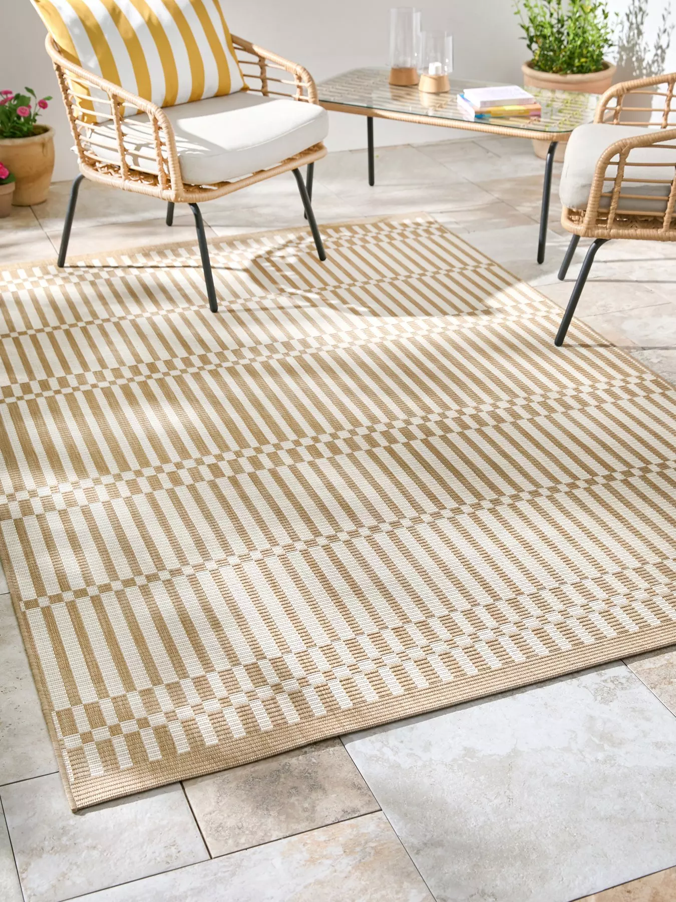 Elevate your in-or-outdoor spaces in an instant with the timeless, hard-wearing charm of our Element Textured Indoor/Outdoor Rug.The natural palette is full of versatility and works well with simple, minimalist spaces, as well as brighter settings. It’s adorned with a unique all-over pattern that helps to build a sense of depth and texture in the look.
