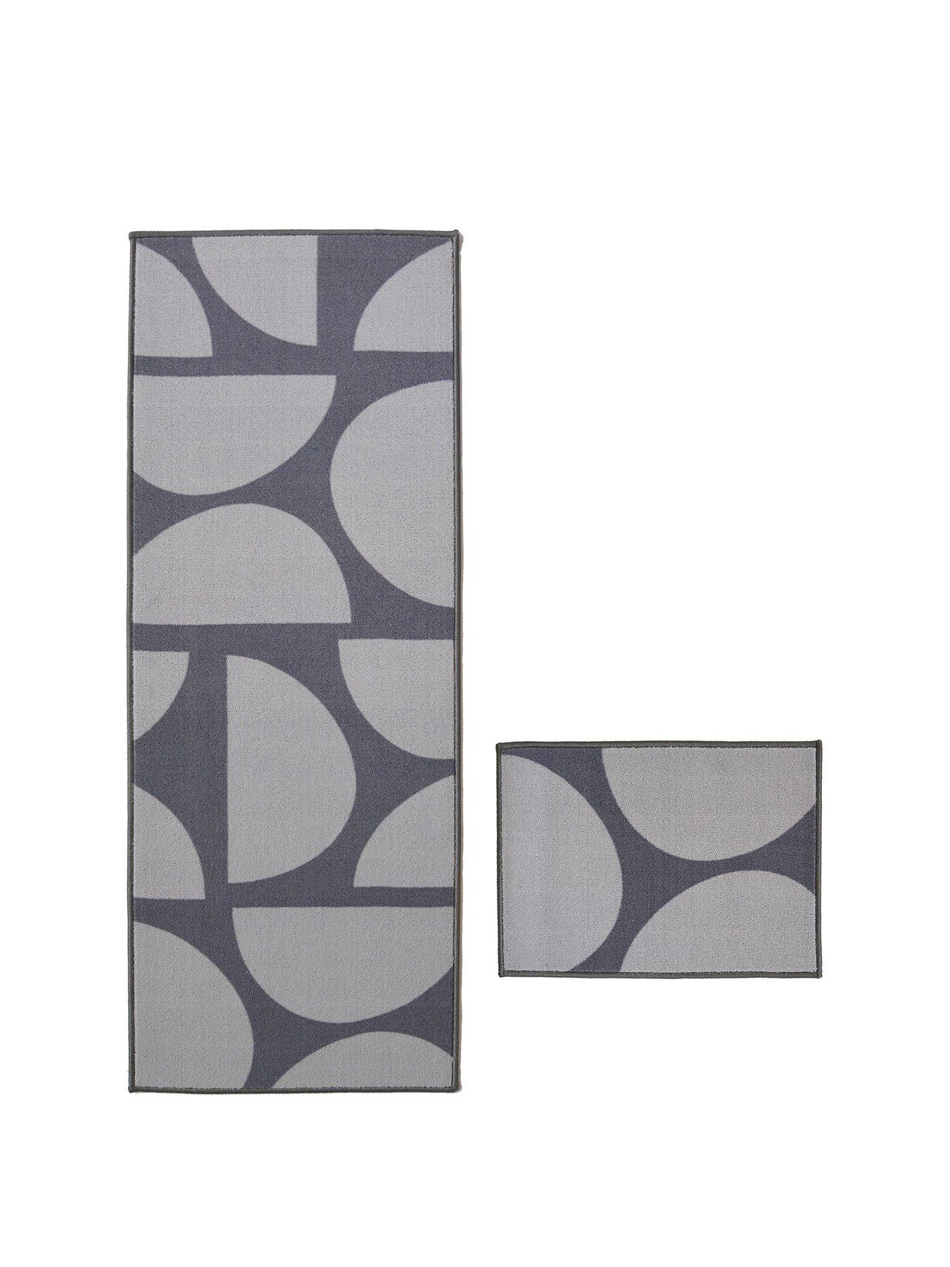Elton Runner & Doormat Set in 2 colour and size optionsCombining a runner and matching doormat, the great value Elton set from Very Home lets you stylishly cover your doorstep and entranceway or utility areas in an eye-catching statement.Made with a durable polyester pile, they're soft underfoot and showcase a striking geometric motif in a choice of two colourways. Grey is a versatile classic that works well with lots of palettes, while mono creates a striking visual that’s sure to impress. Perfect for protecting your floors and helping to remove mud and dirt from footwear, they're also backed with latex for added peace of mind against slips and trips. The doormat comes in a standard size of 57 x 40 cm, while the runner is available in two options: - 57 x 150 cm - 57 x 180 cm