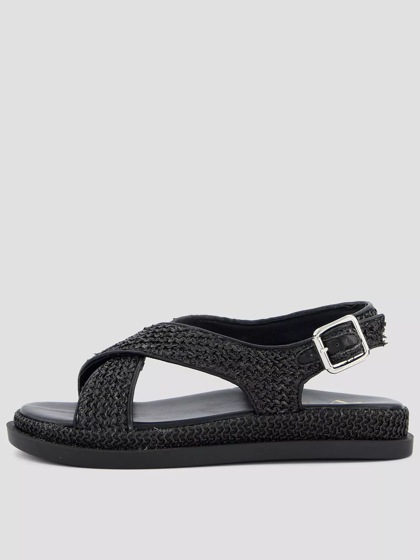 The Very CollectionExtra Wide Raffia Footbed Sandal - Black