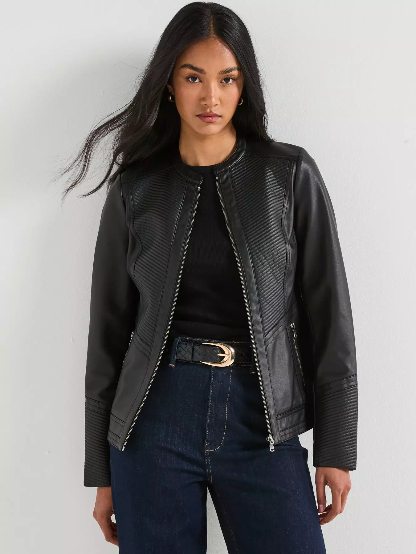 The Very Collection Faux Leather Collarless Stitch Jacket