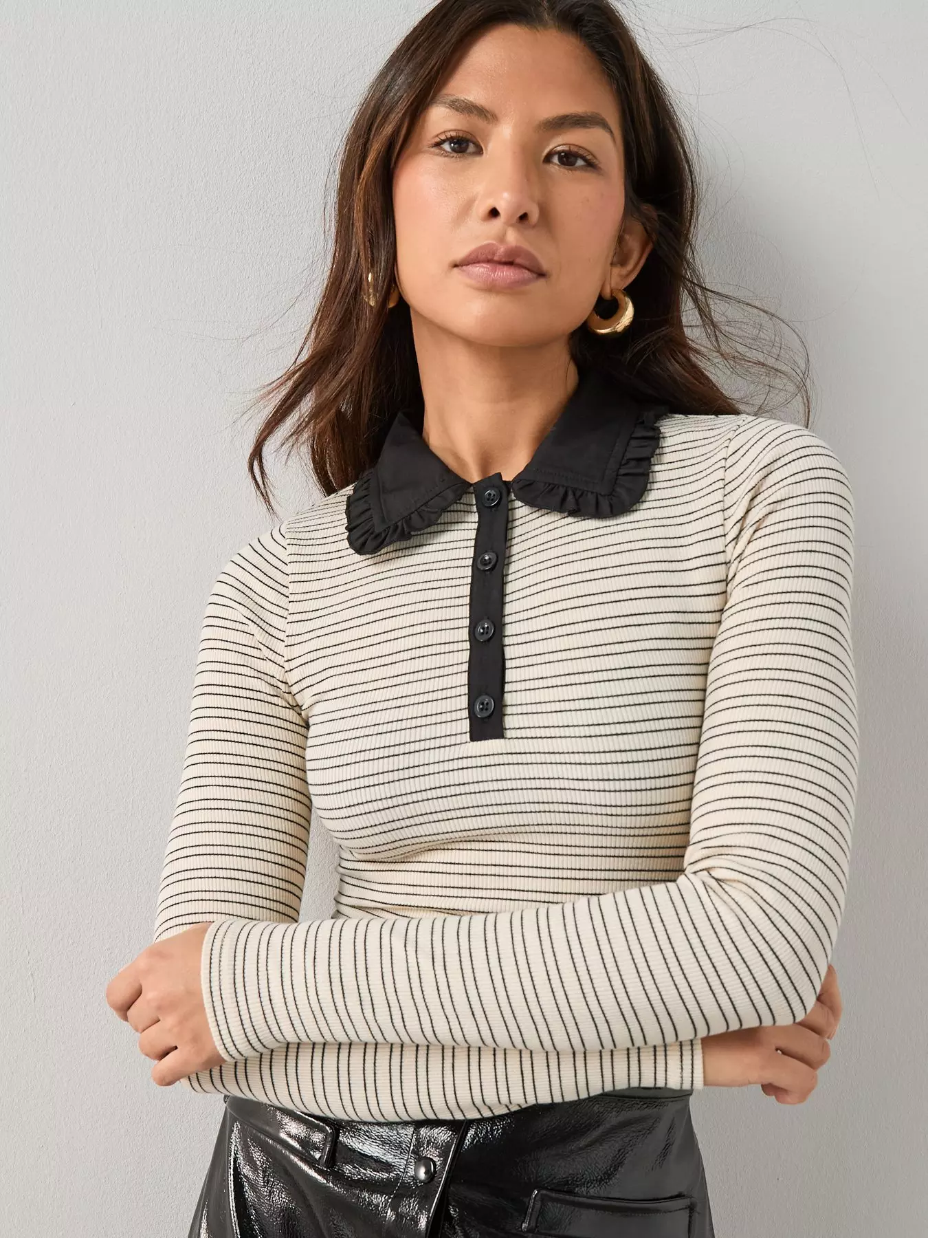 The Very CollectionFrill Collar Stripe Polo Top - Mono