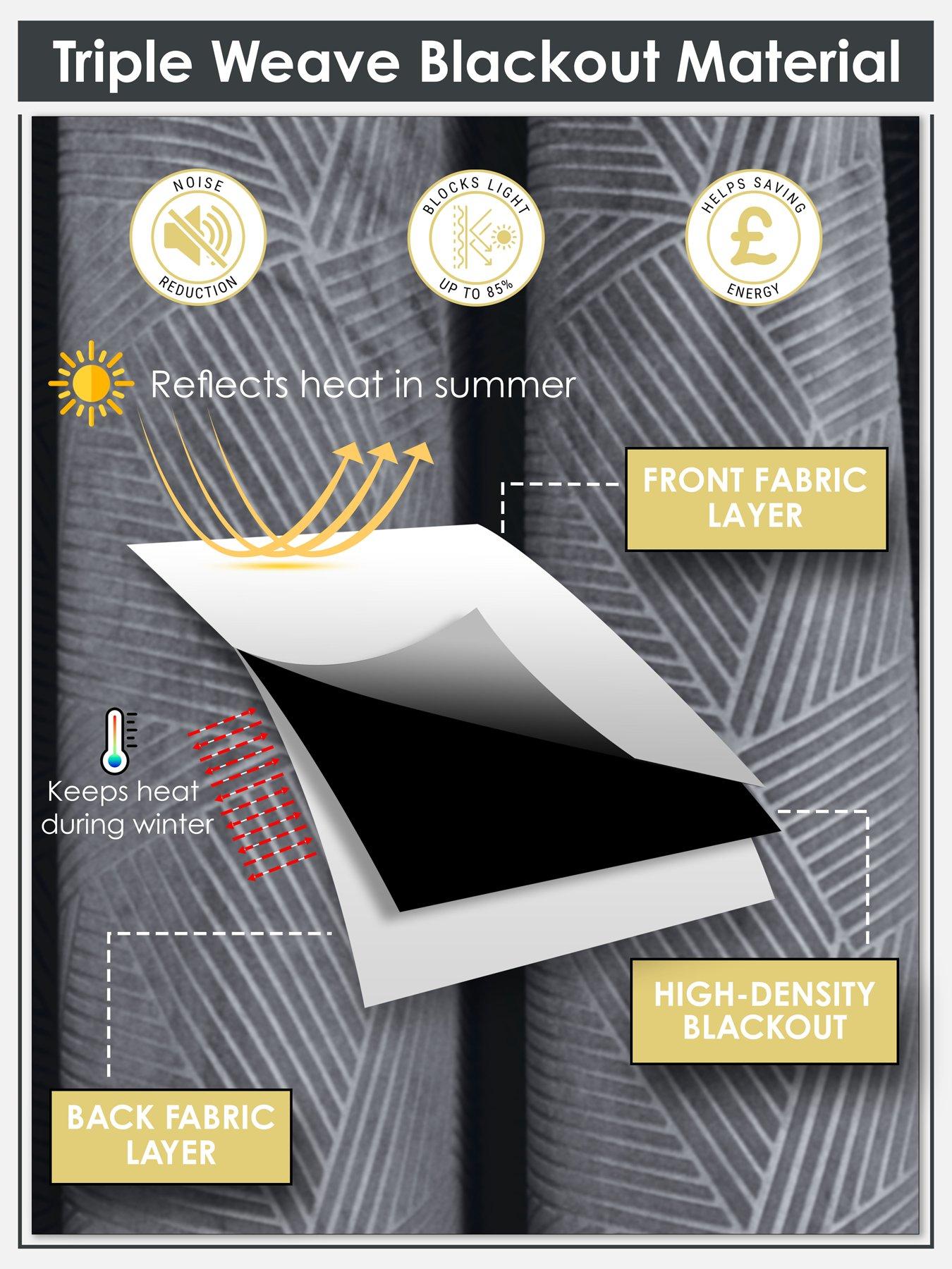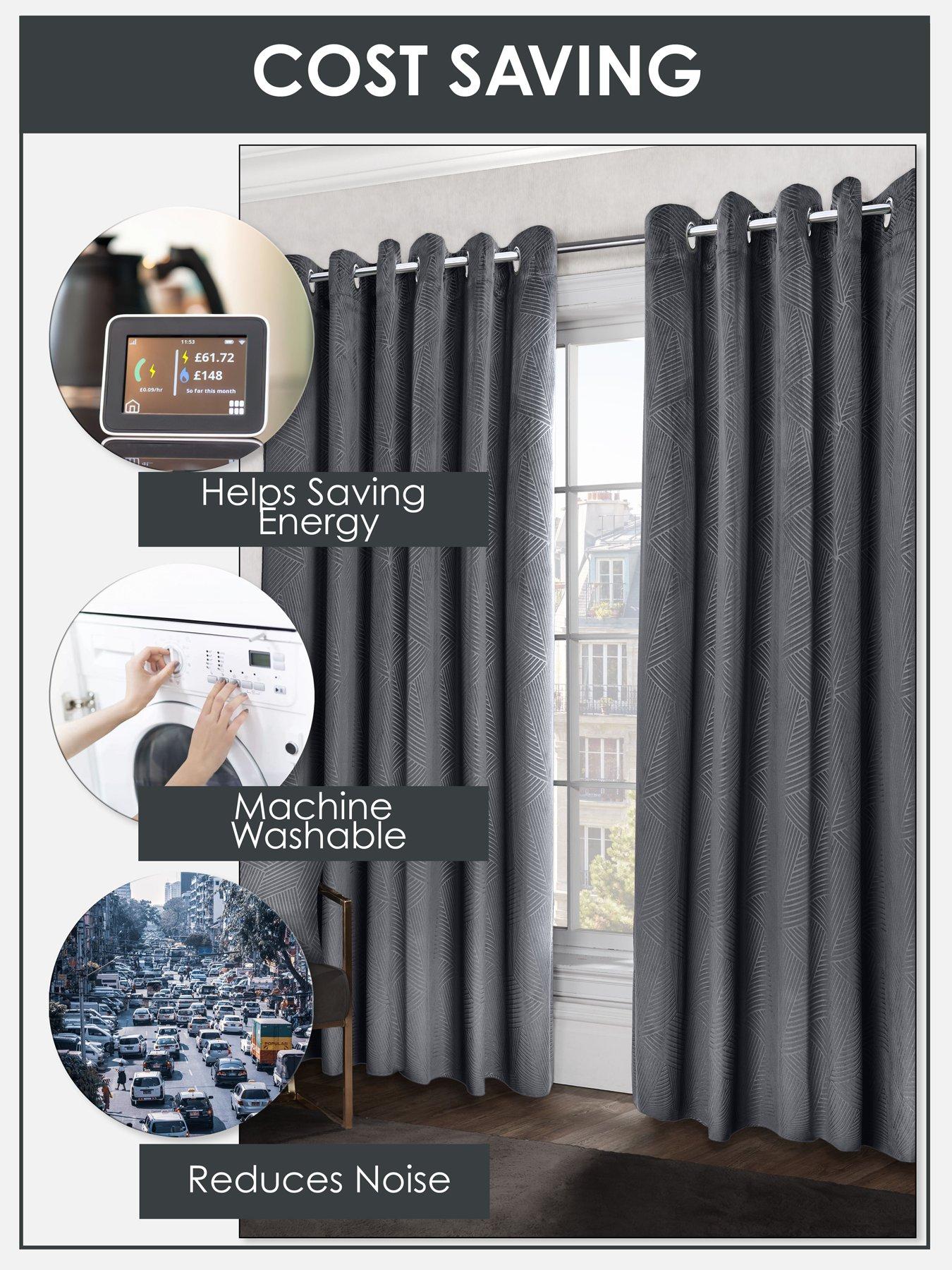 The Very Collection Geo Velvet Thermal Eyelet Curtains 46X72A contemporary woven thermal blackout eyelet curtain pair. Designed with a modern geometric pattern embossed onto a luxurious velvet effect fabric. Available in a sophsticated and stylish colour palette, to make these the perfect curtains for any room where you want some subtle wow factor. The woven multilayer construction of our fabric helps minimise light penetration, as well as keeping you warm in winter and cool in summer.