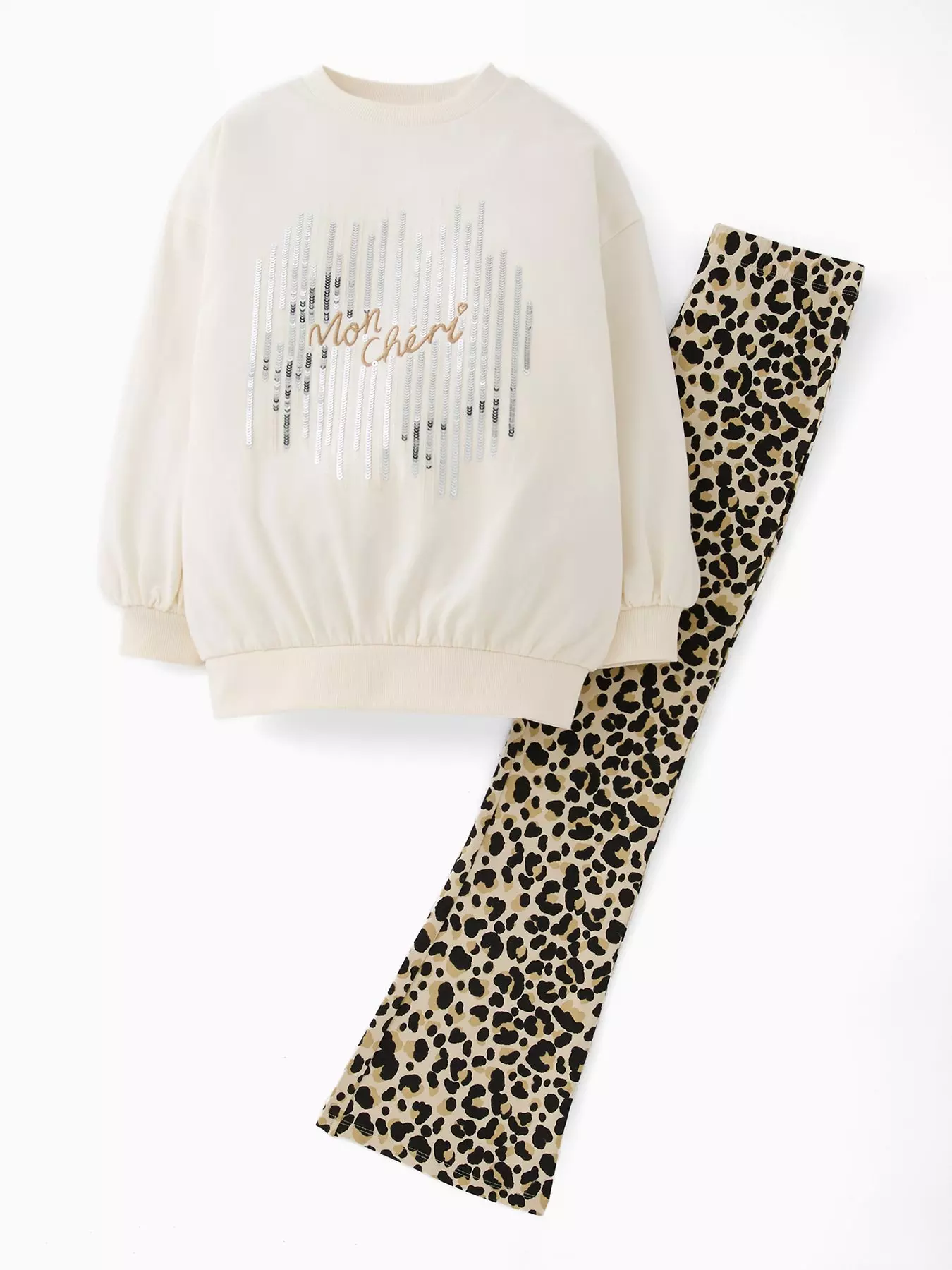 The Very CollectionGirls Longline Sweat Leopard Print Outfit - Cream