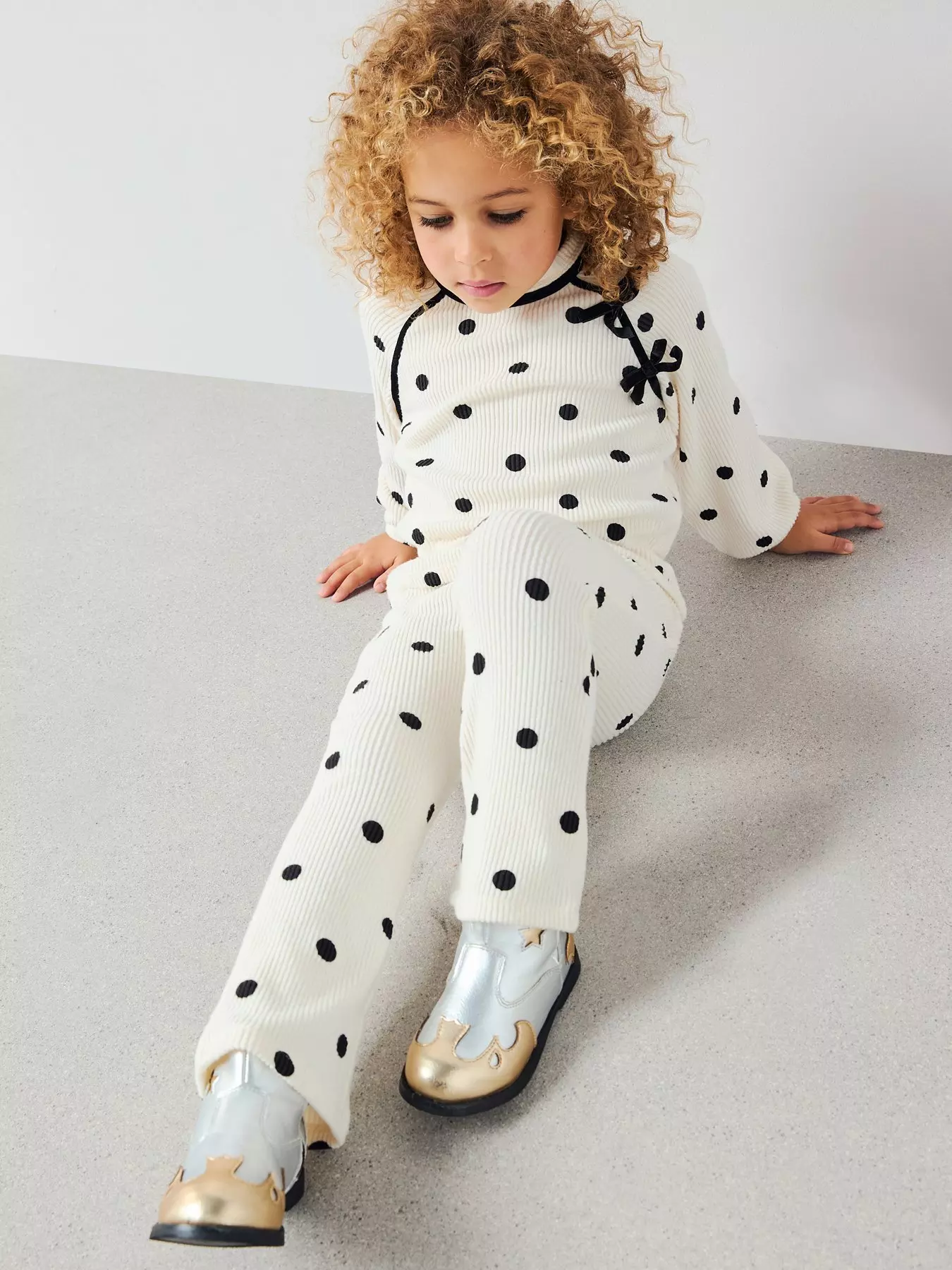 - Girls Soft Touch Polka Dot With Velvet Bow Trims Set by The Very Collection